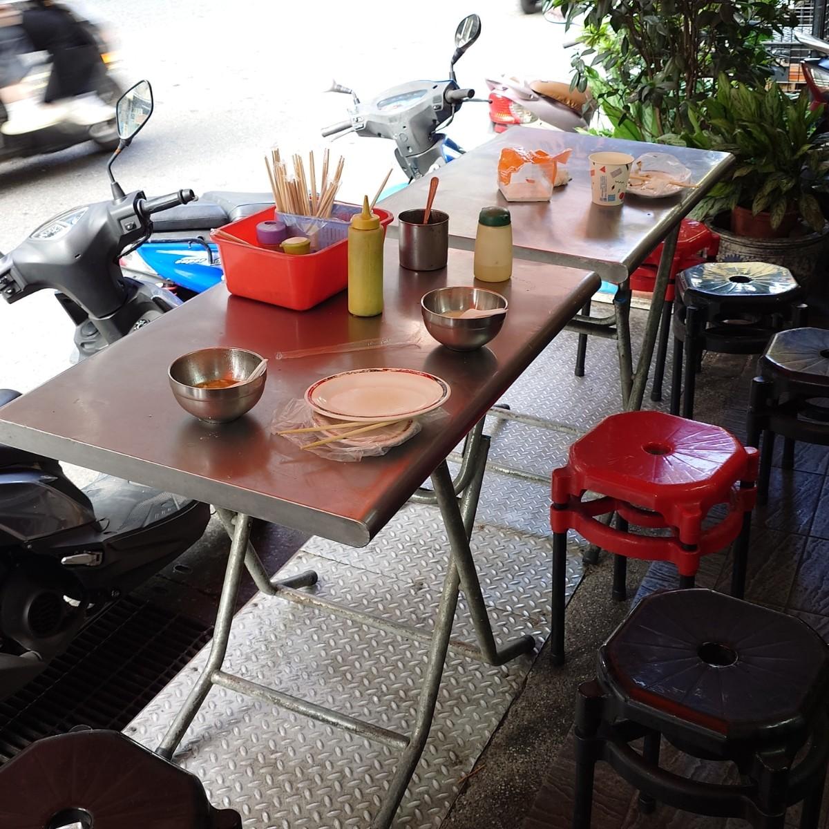 有店鋪,但過去在內用餐的地方變成員工用的料理台,所以只剩路邊,每天也是漂白水加沙拉脫狂刷。用餐人很多,所以桌面永遠沒辦法很乾淨,唯一乾淨時間只有非尖峰期。