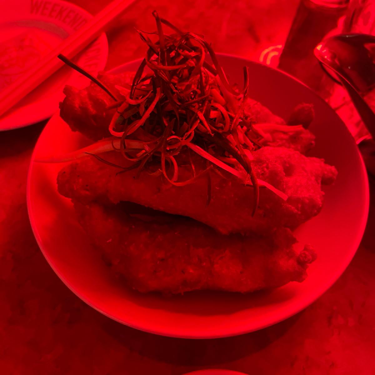因為不太餓又懶得吃有骨頭的東西,所以點了極嫩啤酒炸雞-塔塔醬,肉超級大塊,大概有4塊,跟朋友都飽不行,吃起來肉是嫩的,但只點這個感覺有點單一,雖然有招待四小塊小黃瓜,吃到後來還是有點小膩,感覺應該要點辣或重口味一點的品項。