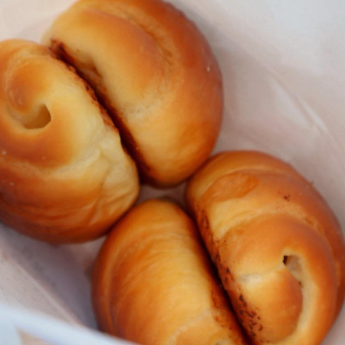 BTW 當我把剩下的一顆放包包裡想說晚點吃,結果隔天起床掏包包的時候才想起:啊!忘記吃了 整個麵包已經扁到像垃圾⋯ 猶豫一下還是覺得不要浪費,咬了一口發現⋯還是很好吃耶🤣而且覺得比剛買的更好吃(?