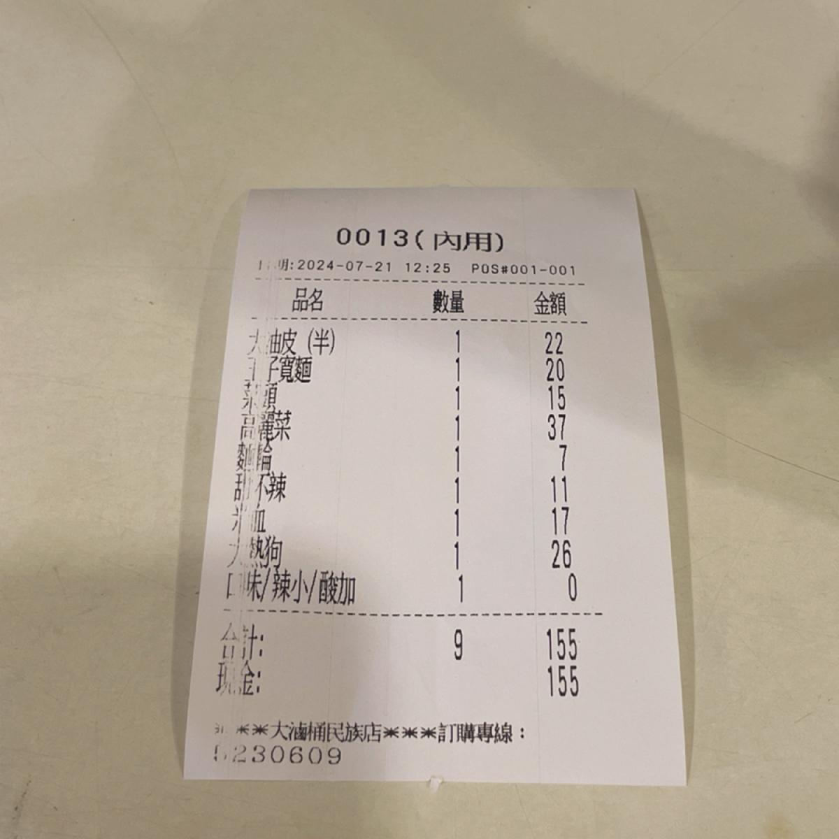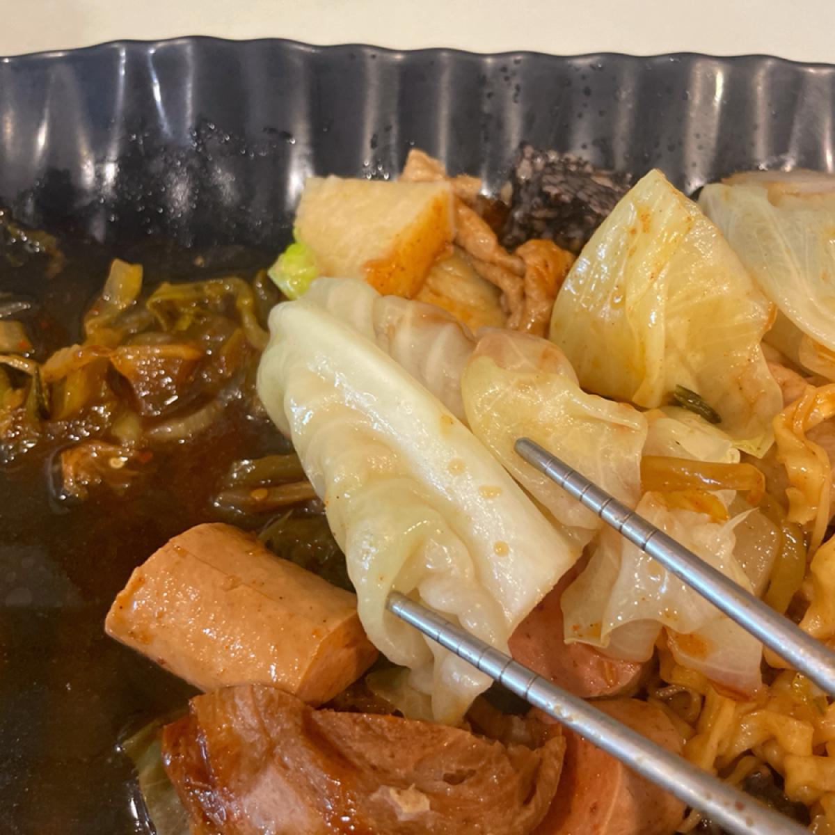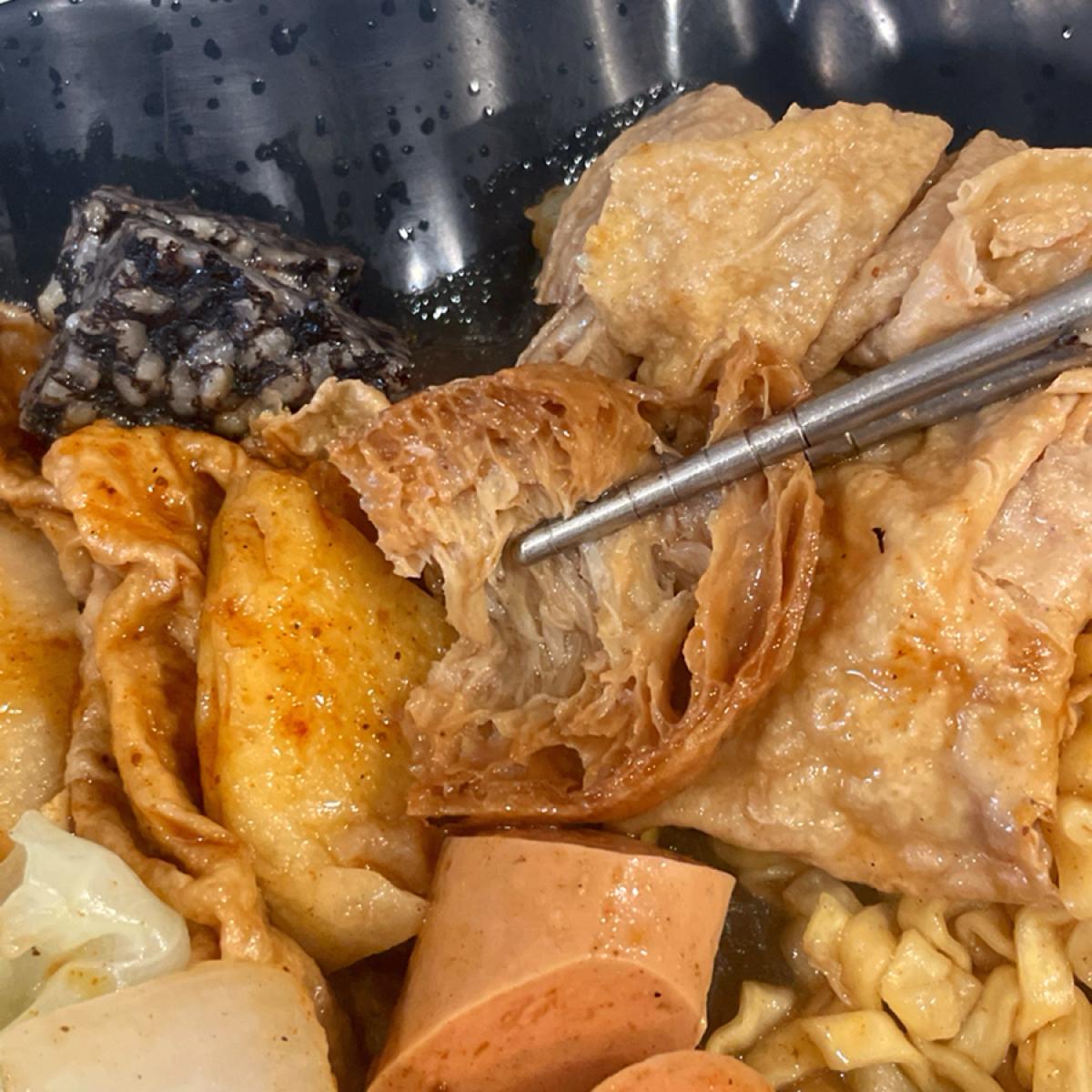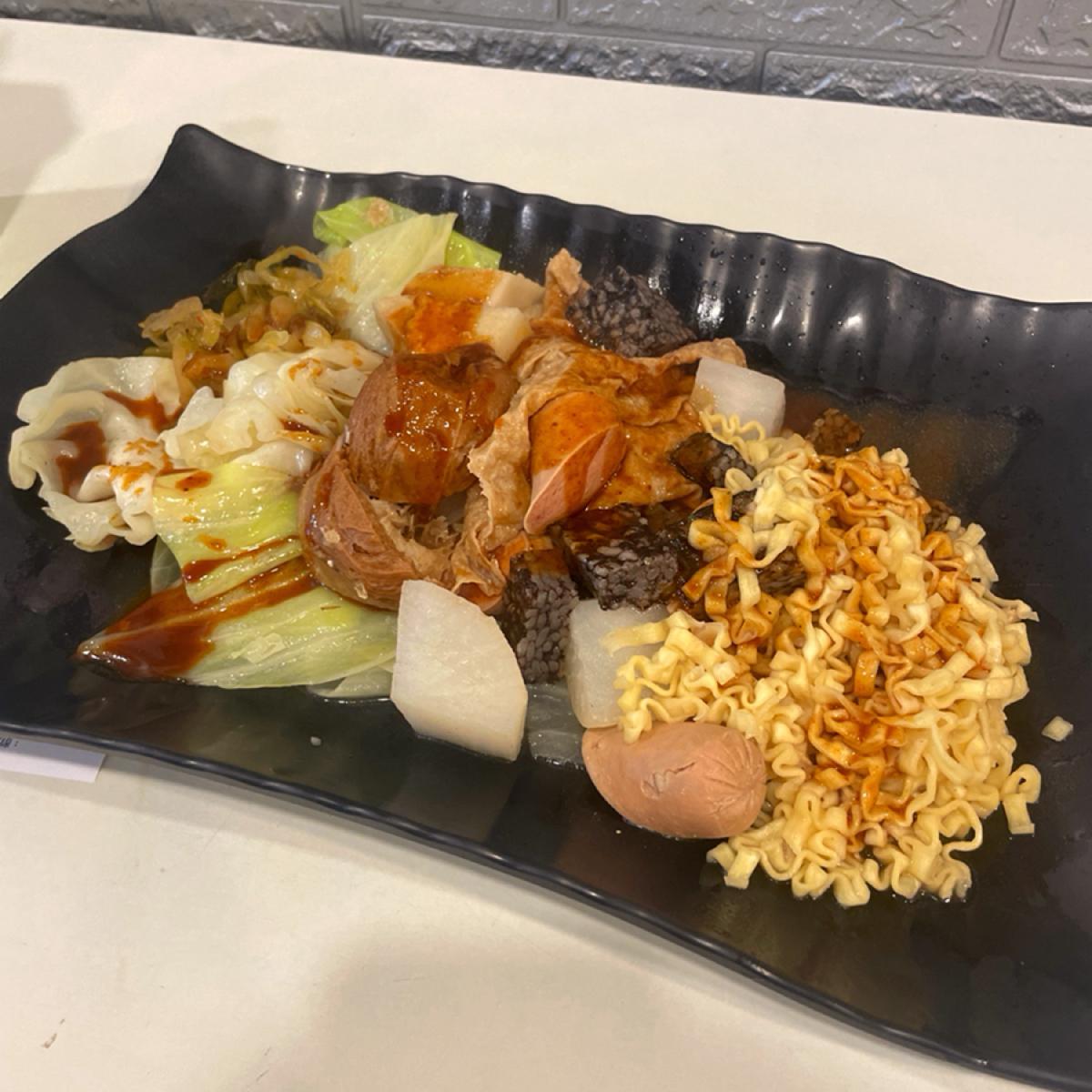 今天吃什麼📝 大豆皮(半 )$22 王子寬麵 $20 菜頭 $15 高麗菜 $37 麵輪 $7 甜不辣 $11 米血 $17 大熱狗 $26
