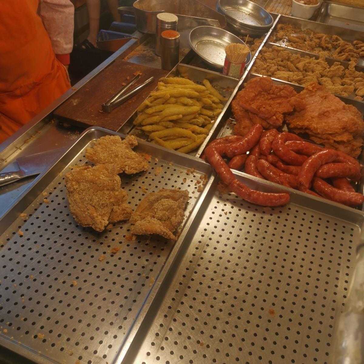 這裡點餐首推雞腿和雞排,個人也很愛吃他的柳葉魚跟雞屁股,喜歡炸丸子的可以點炸點心類的,但強烈推薦買杯無糖茶,有點油膩XD!