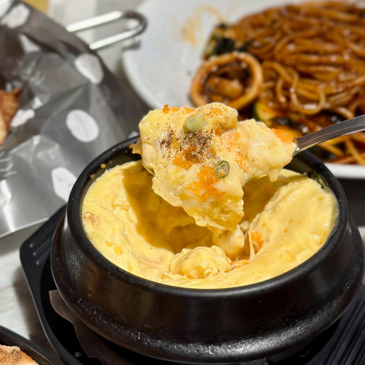 ✅韓國起司蒸蛋:店內人氣必點招牌。入口是厚實綿密的蛋香,再加上味道濃郁的起司,讓人享受雙重香氣與口感。而上方還有點綴些許魚卵,讓色澤上更為鮮豔。
