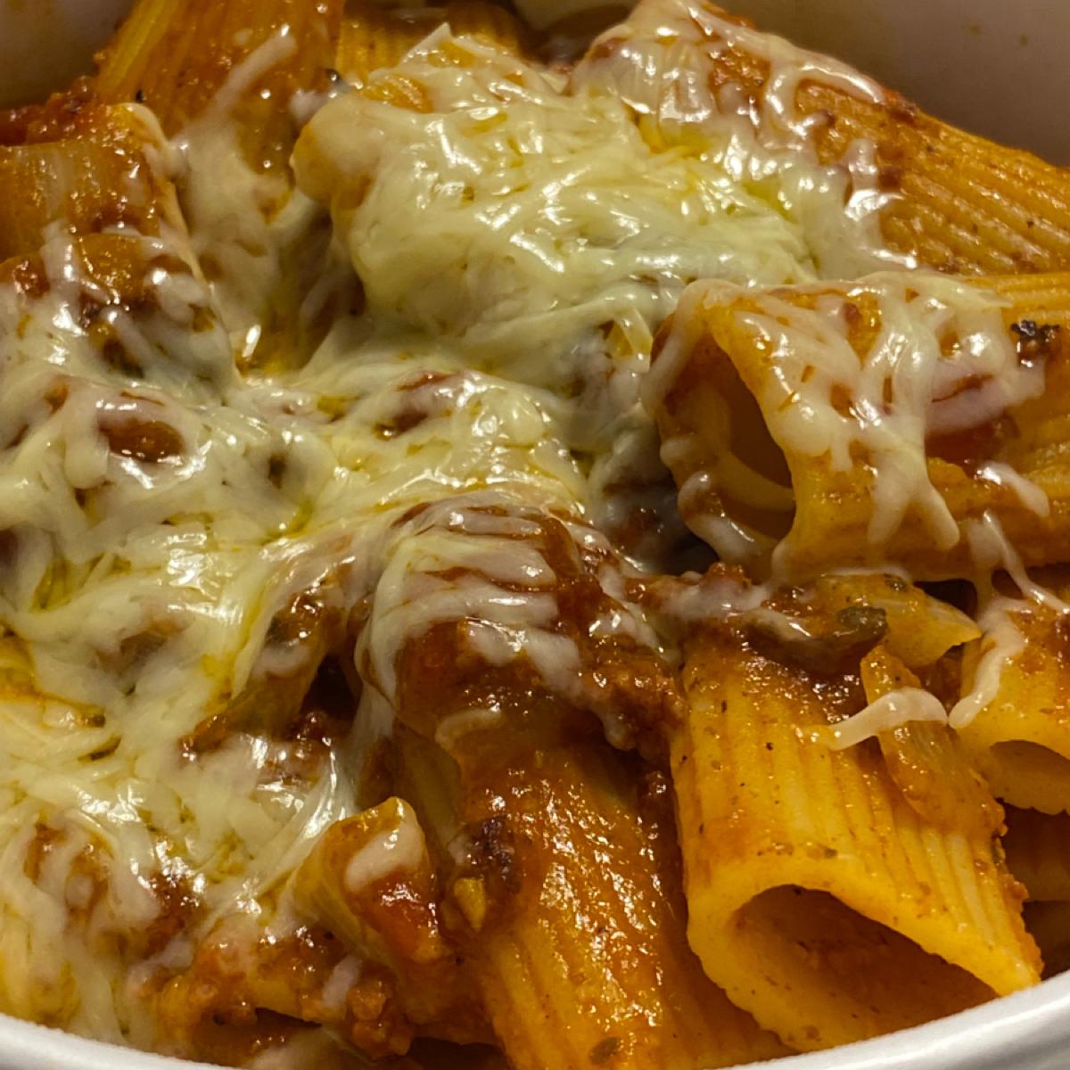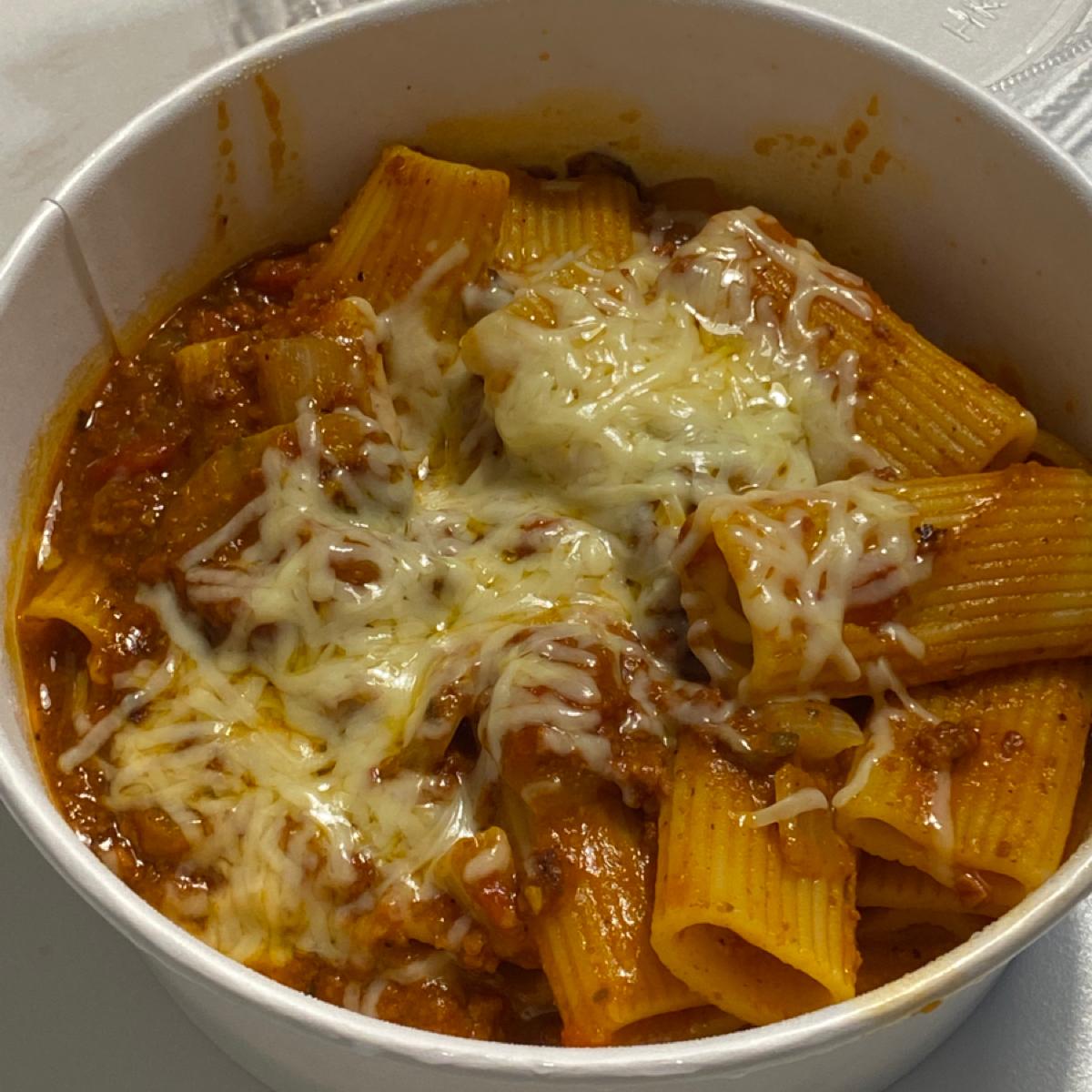 🍝經典波隆那肉醬水管麵 外帶120 紅醬味道很足,起司、肉醬和蘑菇也很多,水管麵很特別,口感較一般麵體Q彈,個人非常喜歡水管麵😻