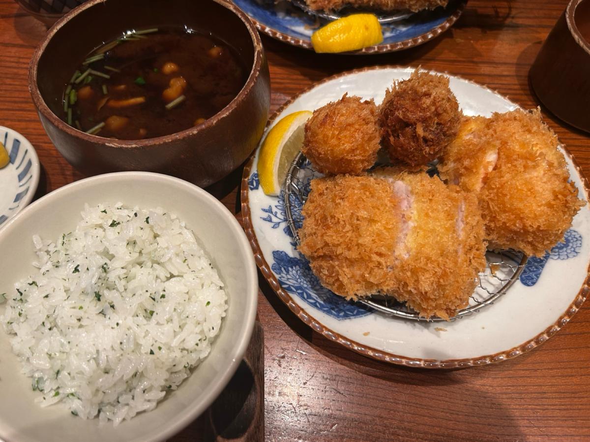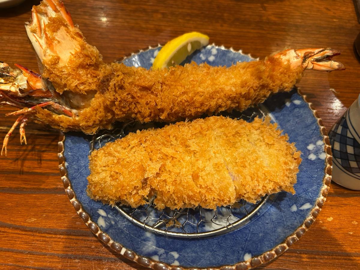 醬汁類似勝烈庵特製醬,味道甜美且精緻。個人希望搭配鹽食用!海蝦炸物希望有塔塔醬。可選白米或紫蘇飯。里脊肉的油脂較少是好事,豬里肌肉炸物很軟嫩。特別講究豬的品種以及低溫油炸。飯跟捲心菜沙拉可以隨意加。※菜單上說醃菜可再加,但是點了卻沒有得到,所以希望能改正菜單記載。