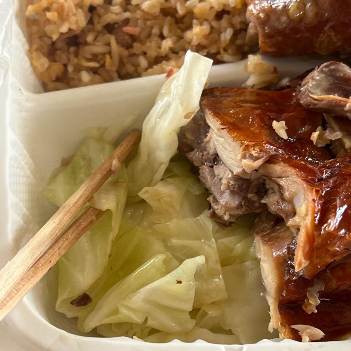 即便是華人經營的燒臘飯,份量也都是很美式,那個烤鴨的肉多到可以分2個大男生吃,吃到你不要不要的,味道也算是滿道地的。但最讓我感動的是,我居然在肉下面,發現炒高麗菜!!!雖然沒有像台灣吃到的那麼香甜,但還是超級感動,也有種回家的感覺。