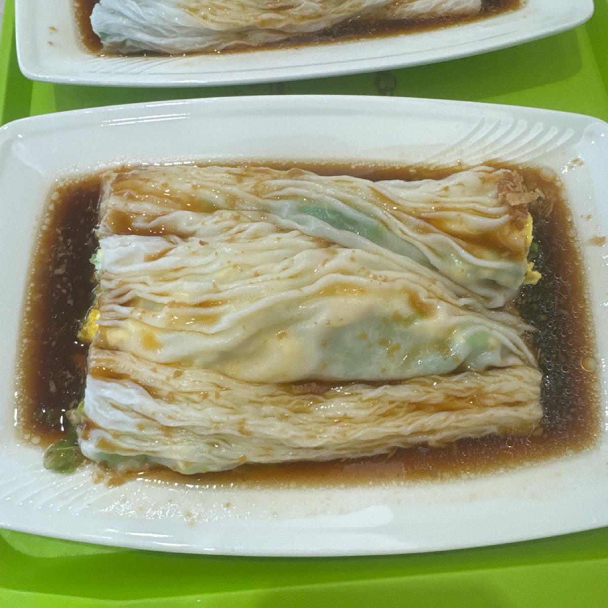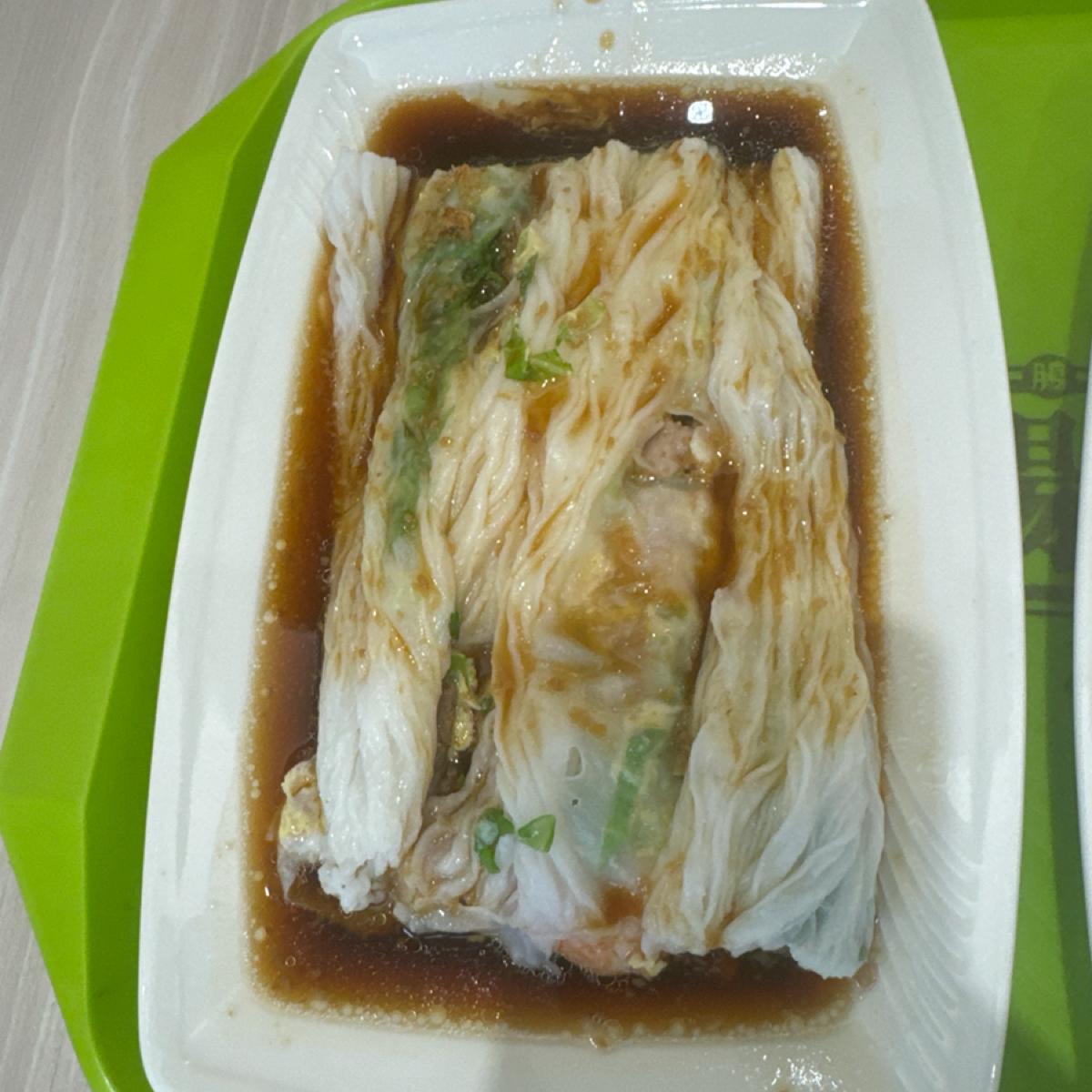 這次點了鮮蝦腸粉的蝦子像是自己手撥的,很新鮮又好吃,皮薄菜的份量也足夠,會超級無敵撐的那種份量,調味的蒜味較重,味道不錯。