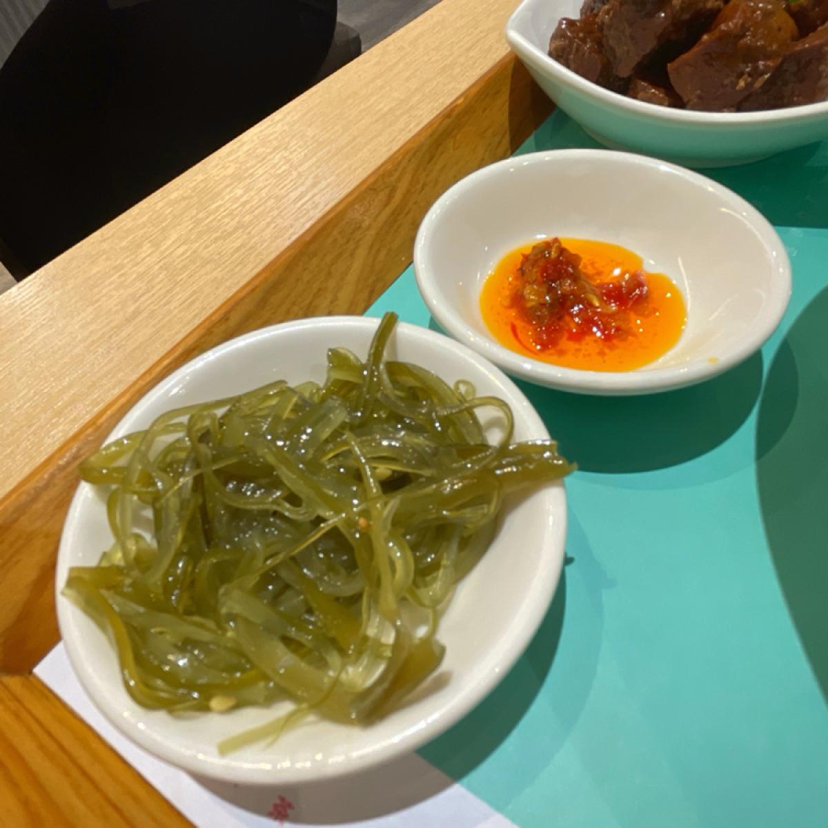 🥬海帶絲:海帶絲微微鹹甜,特別程度不比豆乾與乾絲,但因為是免費小菜,整體來說是加分。