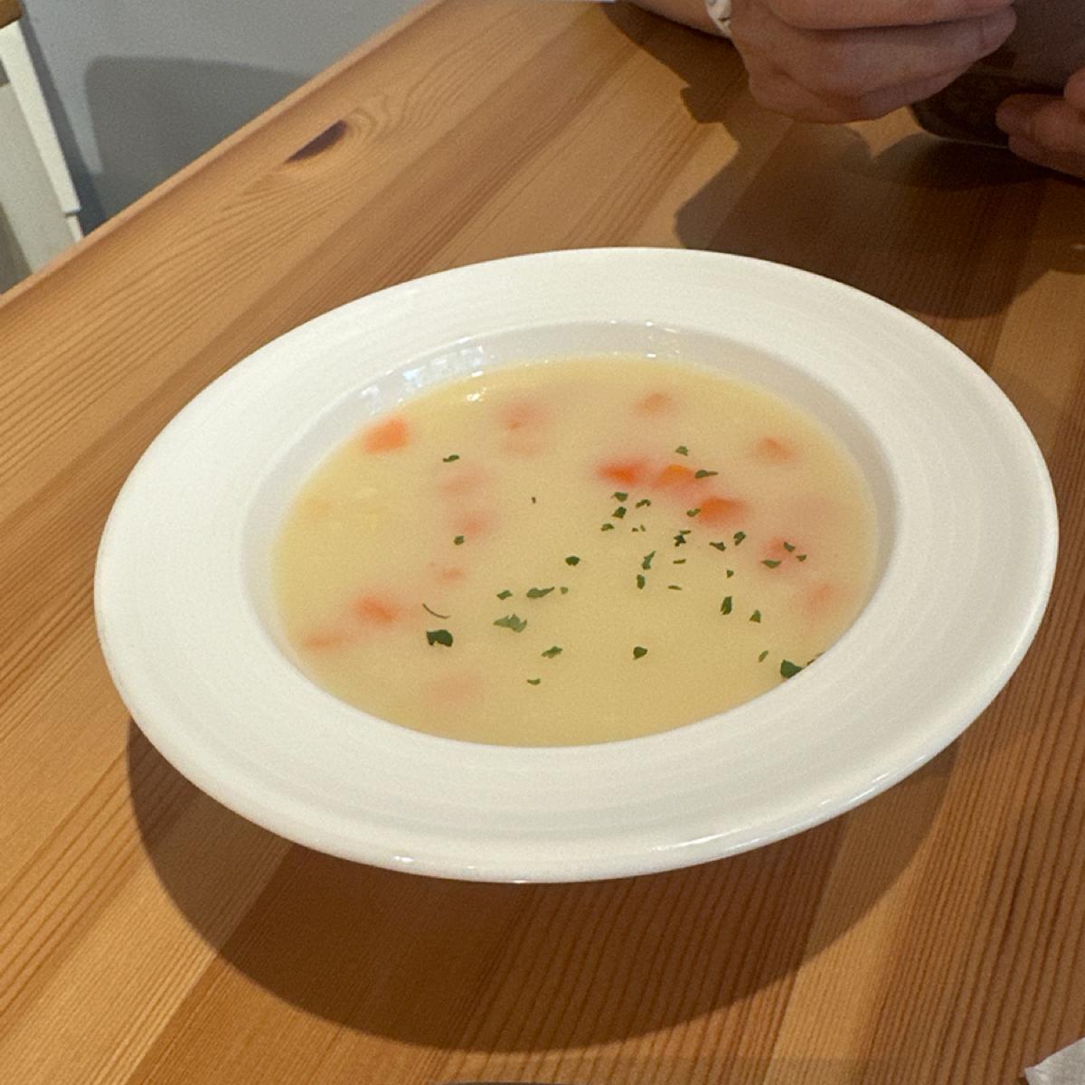 套餐的小麵包就還行,小小兩片,有點像酸種吐司,蠻開胃的。玉米濃湯的部分就沒有記憶點。飲料也是一般般。