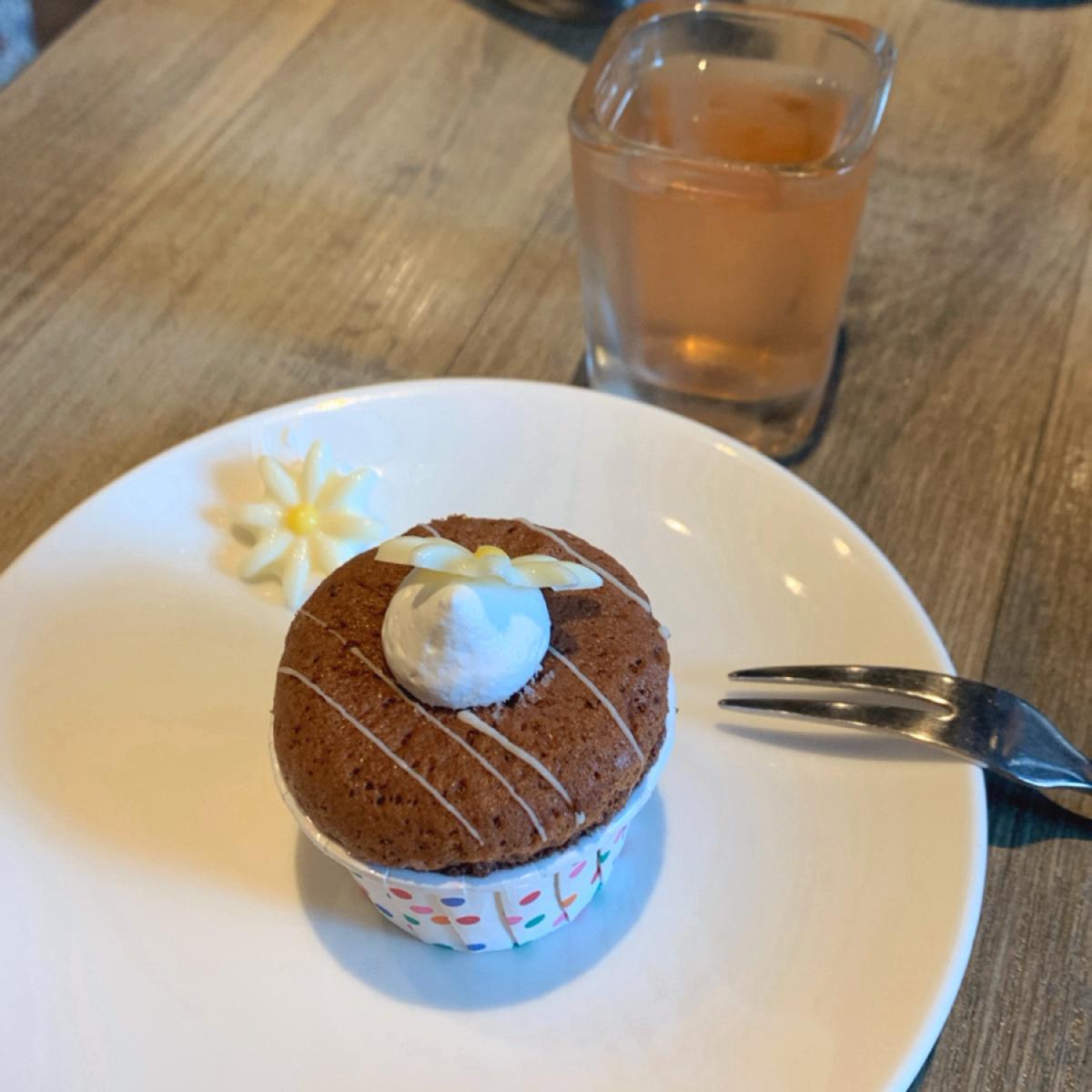 最後還有附上一塊巧克力小蛋糕跟蘋果醋,很貼心寶寶幫寶寶換香草但上面還是有淋巧克力醬,媽媽哭笑不得🤷♀️