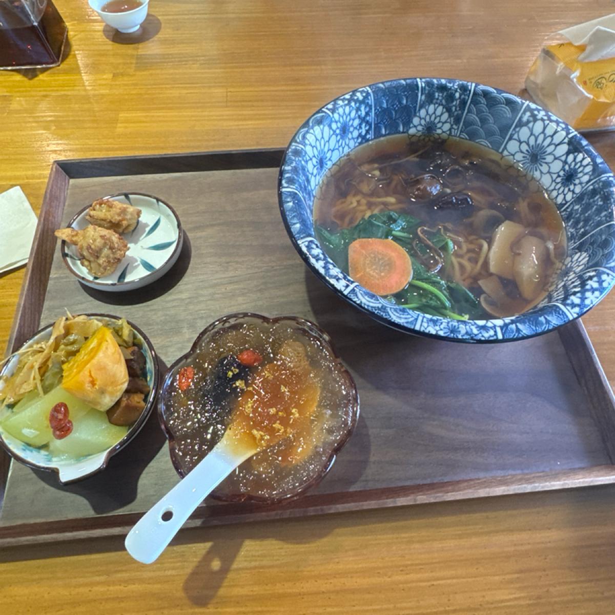 今天點的汽鍋貴妃野菌湯麵,由十數種的食材,內有荔枝乾與龍眼乾、羊肚菌菇…等。用汽鍋把食材的精華逼出來,食材菇鮮味+果乾甜味都很釋放在湯頭裡,由多種食材精華的堆疊組合,讓湯頭真的很豐富。