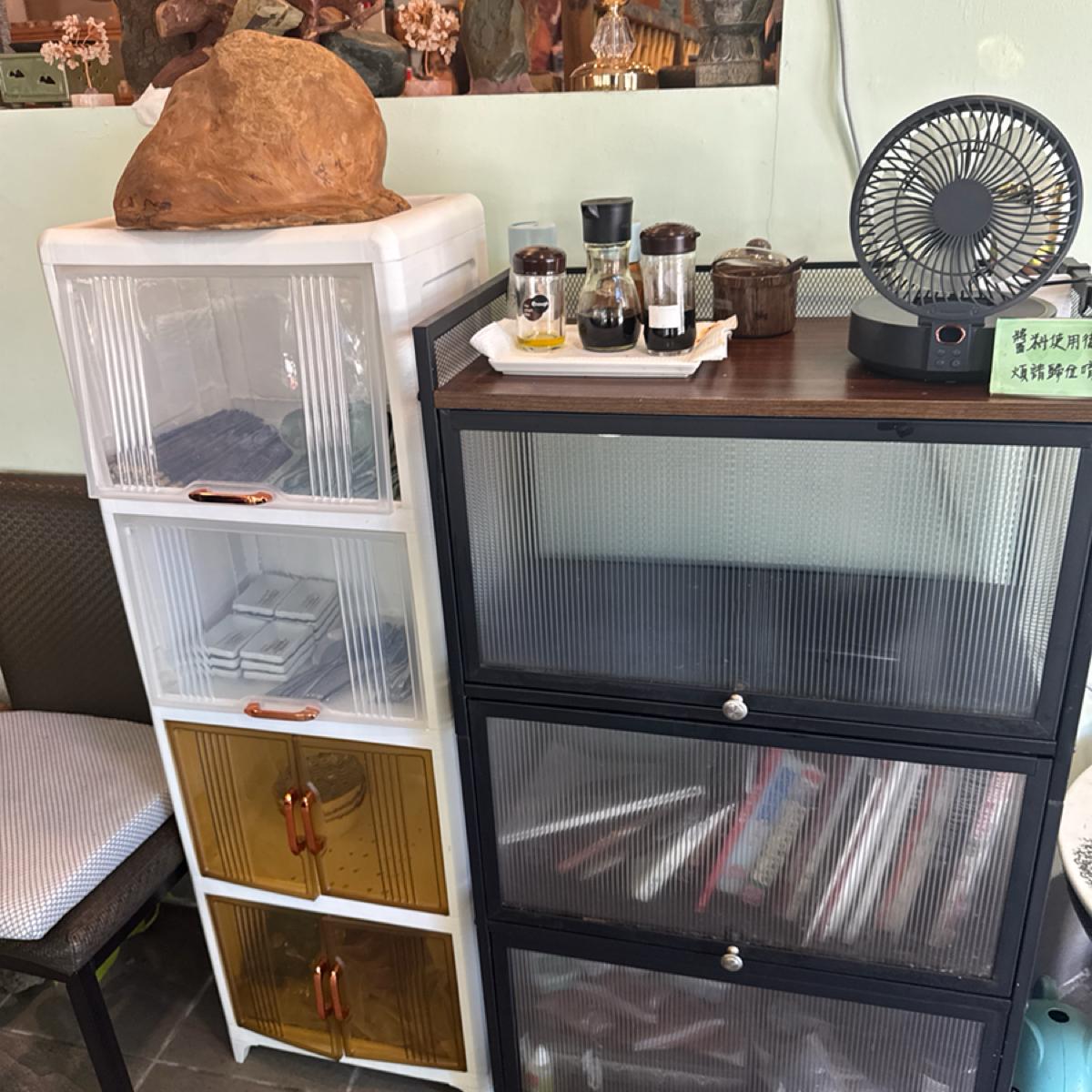 另一個桌上擺著許多大陸的特色茶罐。