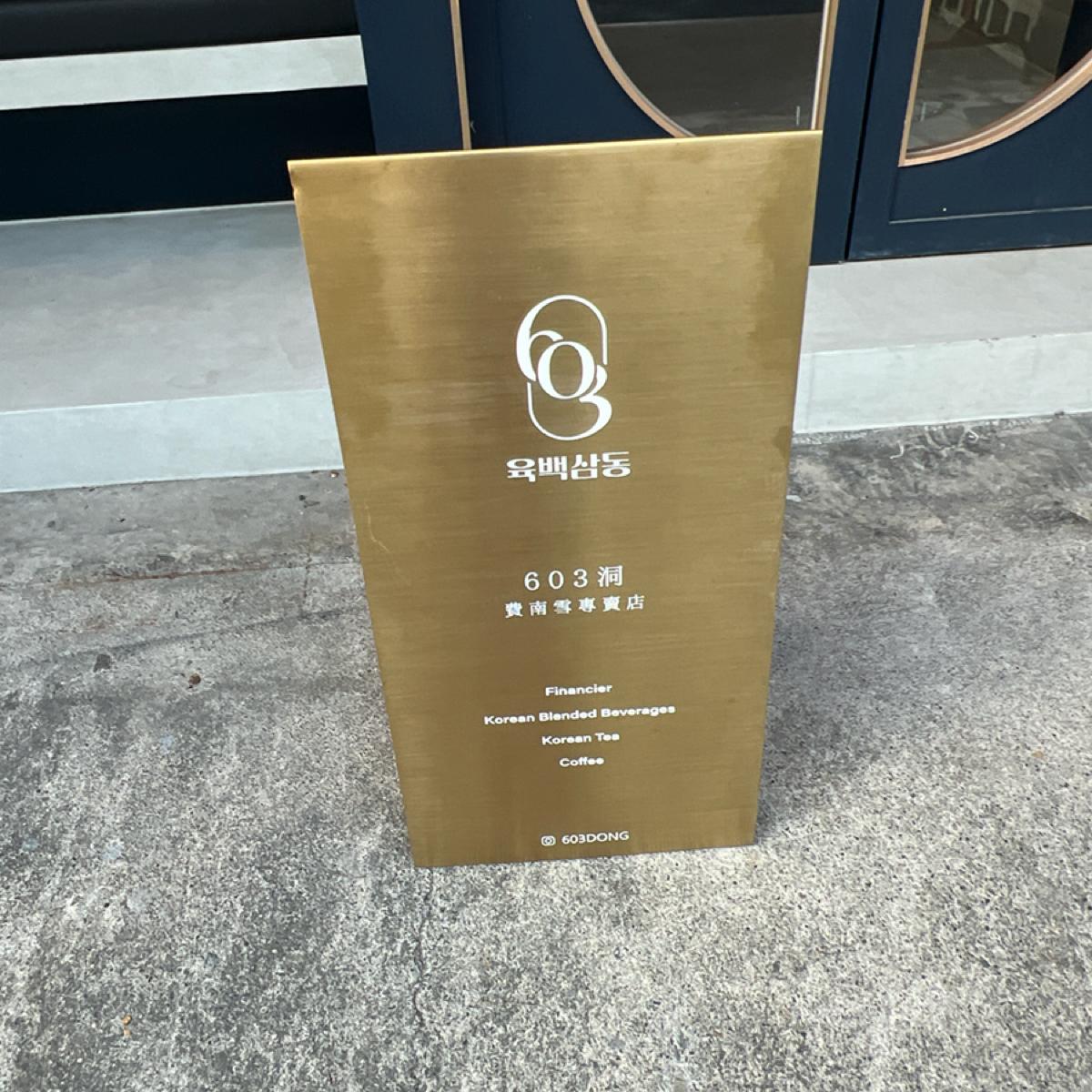 603洞韓式費南雪專賣店,老闆是韓國釜山人,裝潢以釜山的質感深藍為主題色調,提供道地韓國冷熱飲以及十多種口味濃郁的費南雪。 內用低消一杯飲料,因為喝了太多湯湯水水所以只好外帶,費南雪外酥內軟,不會太甜不同口味都滿濃郁的,焦糖阿薩姆、太妃脆片、檸檬伯爵都不錯吃。