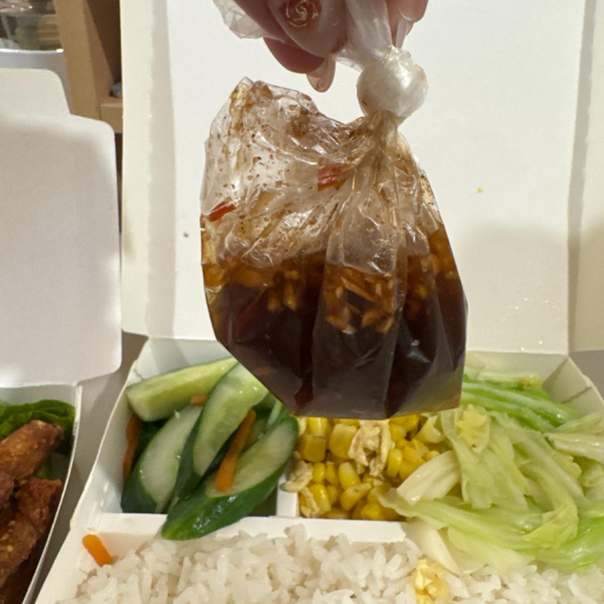 🍱 椒麻雞腿飯 $110 椒麻雞腿飯份量十足,雞肉很大塊,現炸需要等待大約10分鐘,醬汁部分加入薑末讓整體味道略顯特別,與傳統椒麻雞的醬汁風味有些不同,可能會因個人喜好而異。可惜的是配菜表現平平,味道偏淡。