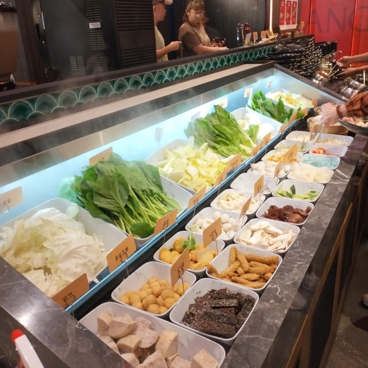 另外;自助餐檯的新鮮蔬菜和火鍋料可以夾取自己喜歡的配料來下鍋。