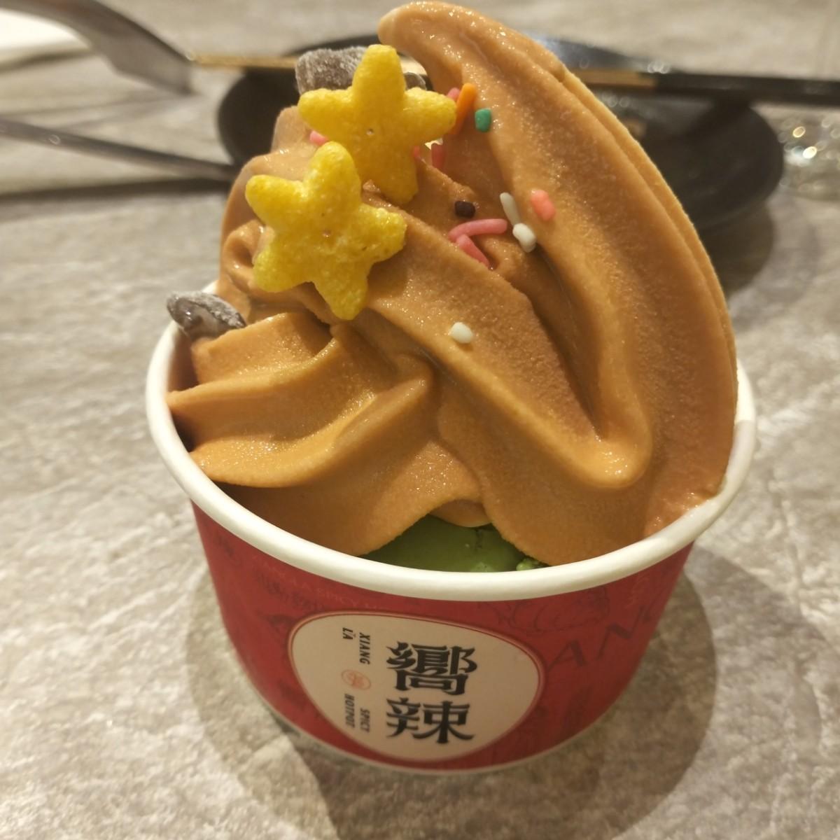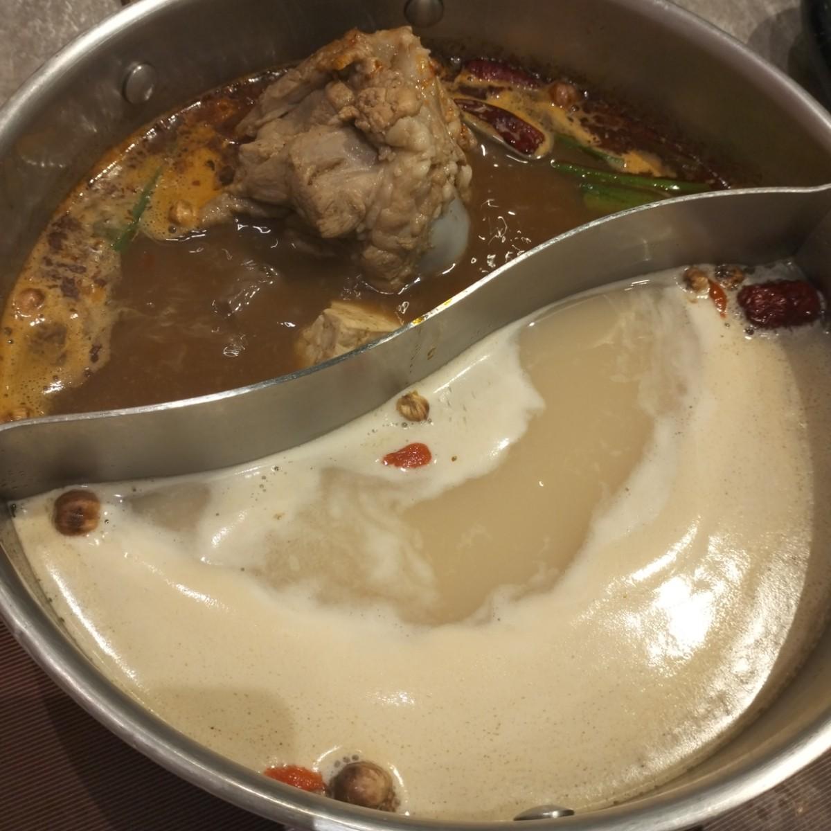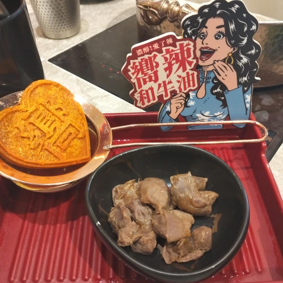 鍋底方面;我們是選了麻辣鍋底和蒜味老母雞湯;麻辣鍋底原味就很夠味;以我嗜辣程度來說是可以當湯來喝,但是店家會另外附上一個可愛造型的乾鍋底,加入後麻辣湯底會更加的香濃。
