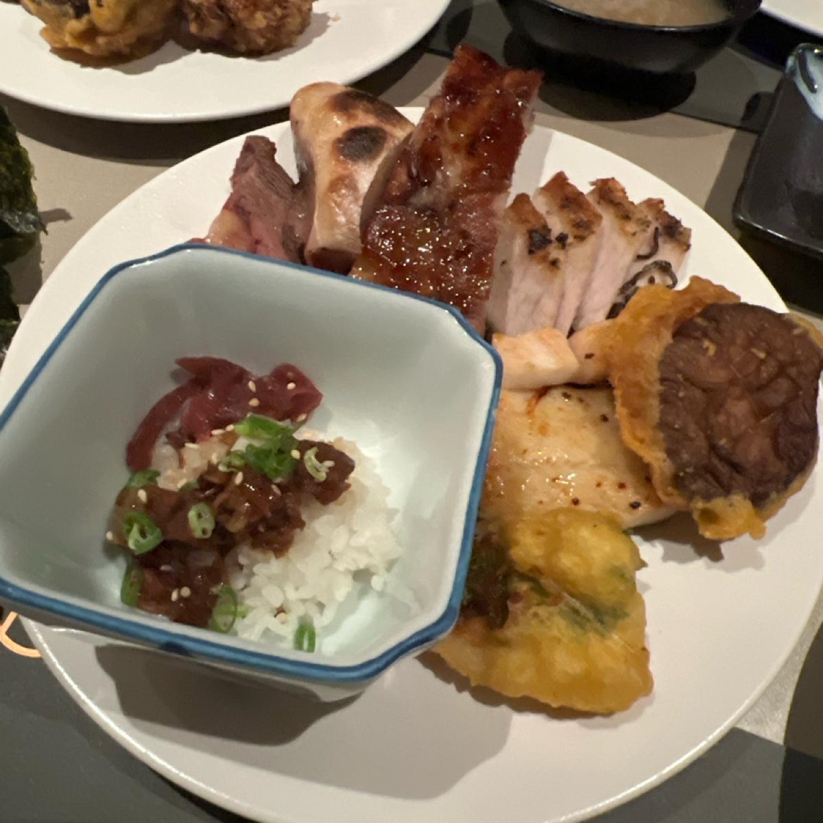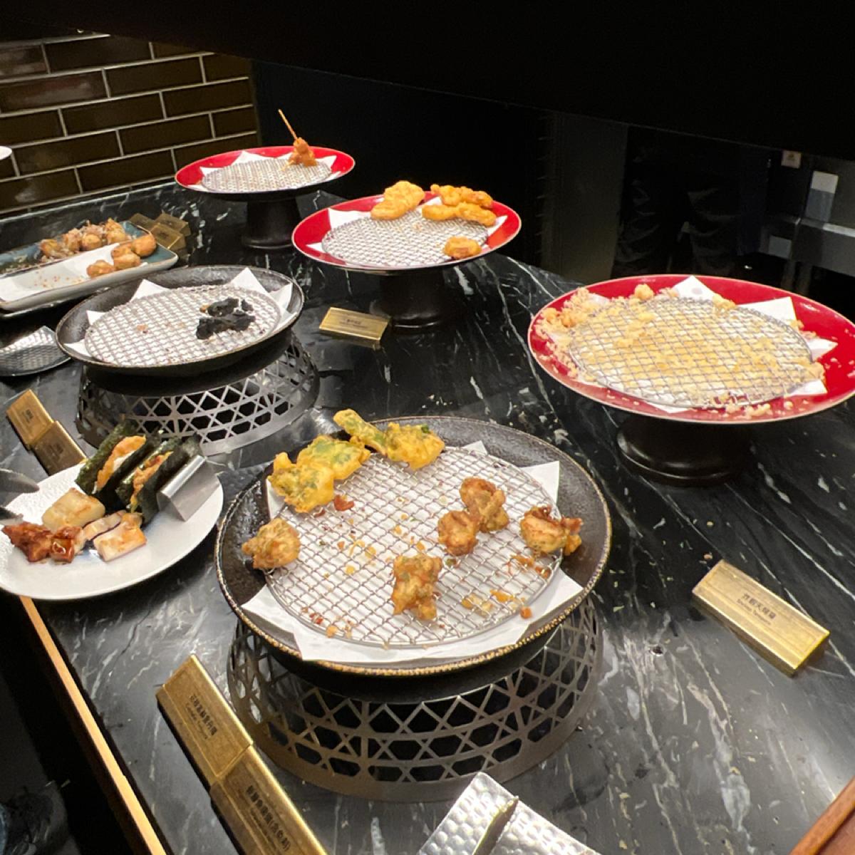 🍣生食區表現穩,甜蝦手捲超鮮甜、海苔脆口,直接連吃三捲不誇張。干貝海膽漢堡雖吃不到海膽味,但我自己拿了好幾次,青甘、鮪魚刺身厚切新鮮,吃得很安心。