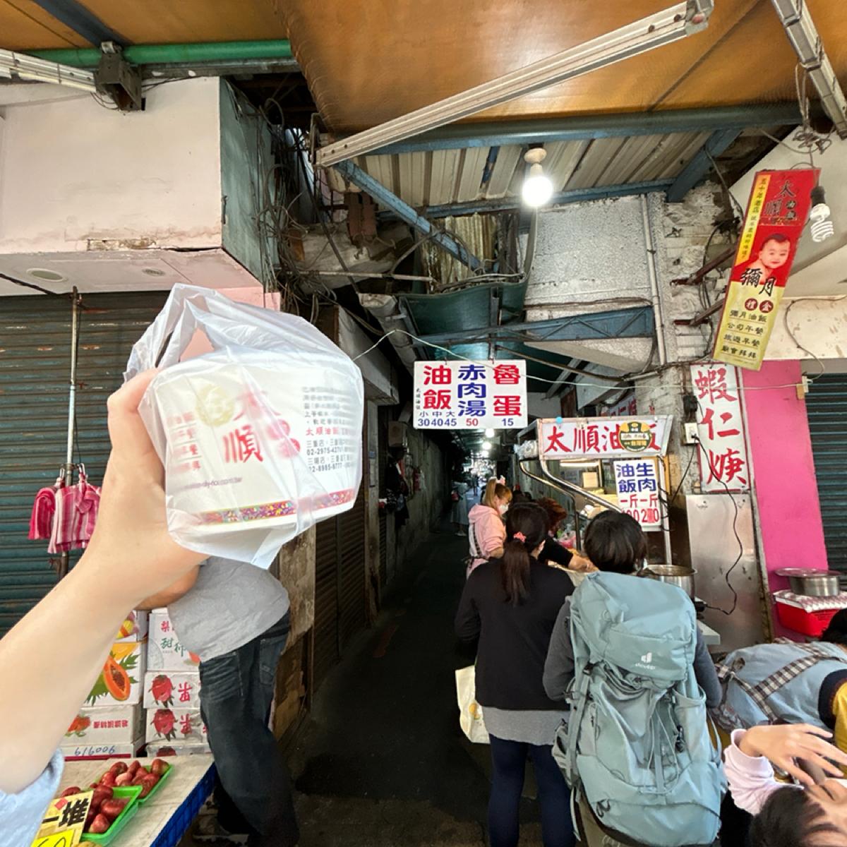 隱身市場裡面的油飯老店,經常大排長龍,每次來買菜都一定會買一碗回家當早午餐。