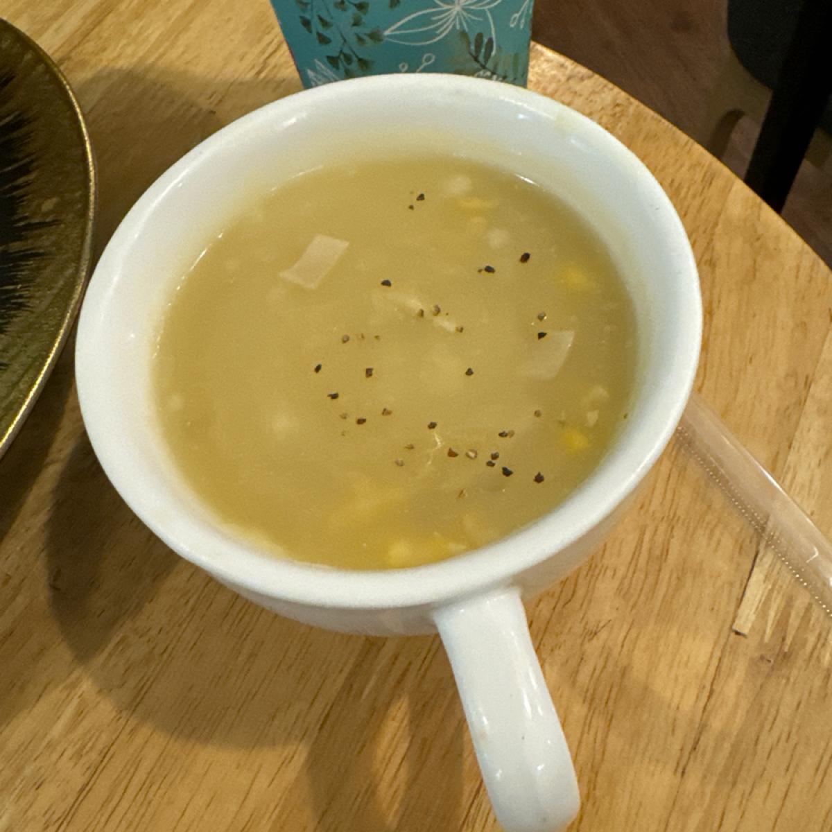 玉米濃湯偏鹹,雞塊也淋一層醬料,感覺這間口味比較重,還好的是餐具區可以自己倒白開水。