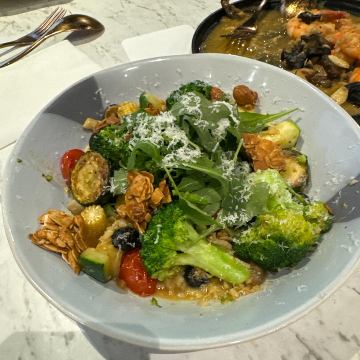 聚餐來這裡,氣氛不錯👍 水好喝且無異味,餐具很乾淨服務人員也很親切,餐點的部分整體來說都很棒。 紅酒也屬於高品質的。 最有印象的就是松露燉飯、烤蔬菜、松阪豬、牛排,除了炸物稍微比較乾以外,沙拉跟海鮮還有餐點都很棒,朋友們點的飲料的,不管是無糖還是有糖都很棒,有時間會再回來用餐!這是一家寵物友善餐廳!