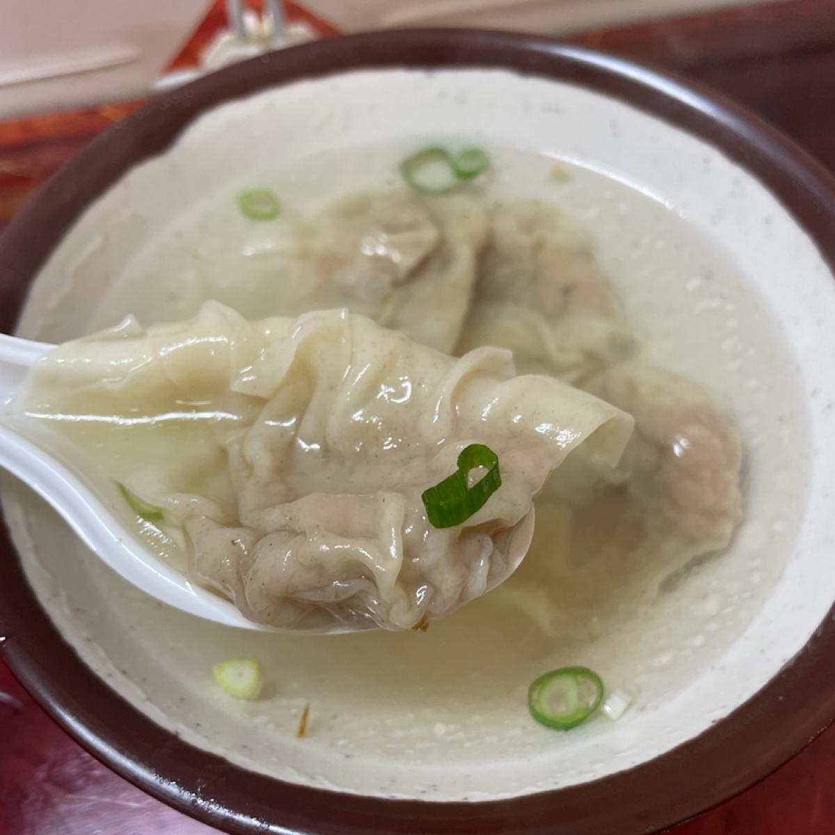 餛飩湯的餛飩共有5顆,個頭不大,一口就能吃完一顆,感覺調味不太夠,餛飩沒什麼味道,湯喝起來也普普通通,這碗餛飩湯非常還好,感覺下次可以單點麵就好