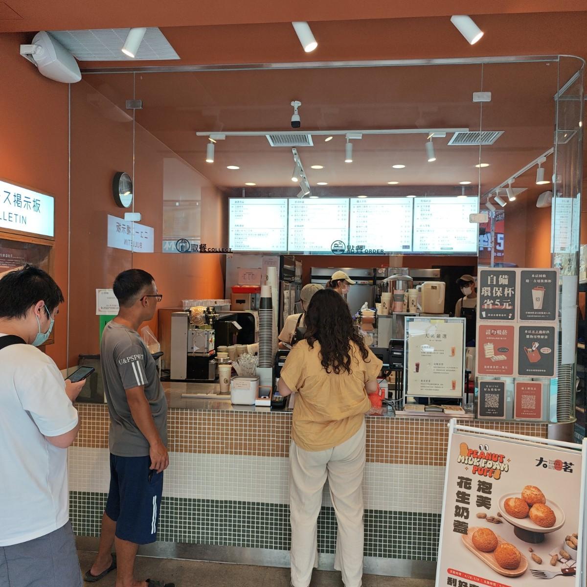 橘色系裝潢與招牌非常好識別,一旁還有復古風格的網美牆可供擺拍(現代飲料店都得騰出空間做這個?)