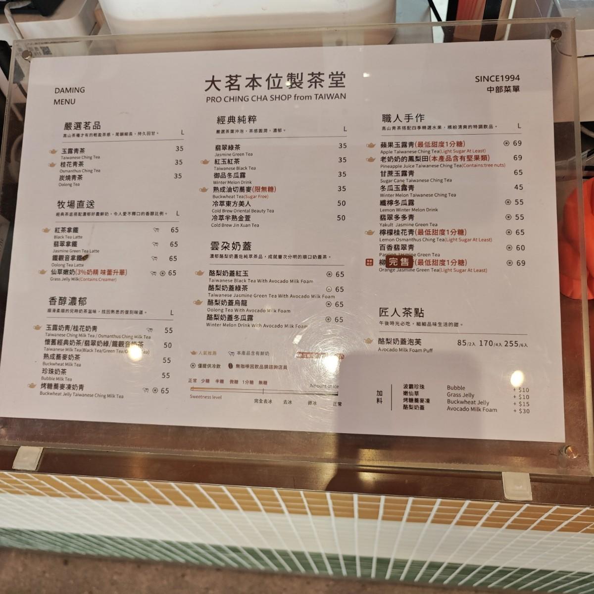 大家都是推大茗的酪梨奶蓋系列,但我對於每間店的純茶都有想嘗試的慾望;這次就點了無聊的純茶來試試。喝起來有點那種稍微燒焦的味道,不難喝但是也沒有到很喜歡,之前喝過的玉露青茶比較合我口味。