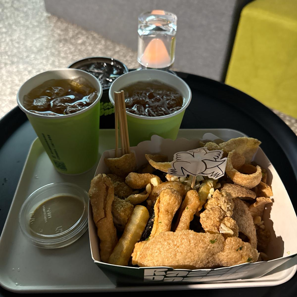 🌟鹹酥雞 就是絕對美味的東西 所有東西拿去炸就是好吃 綜合包 有甜不辣、鹹酥雞、薯條之類的 超級好吃 然後還沒有低消 飲料的部分我們點了有夠經典而且有台灣味的 蘋果西打 超級讚