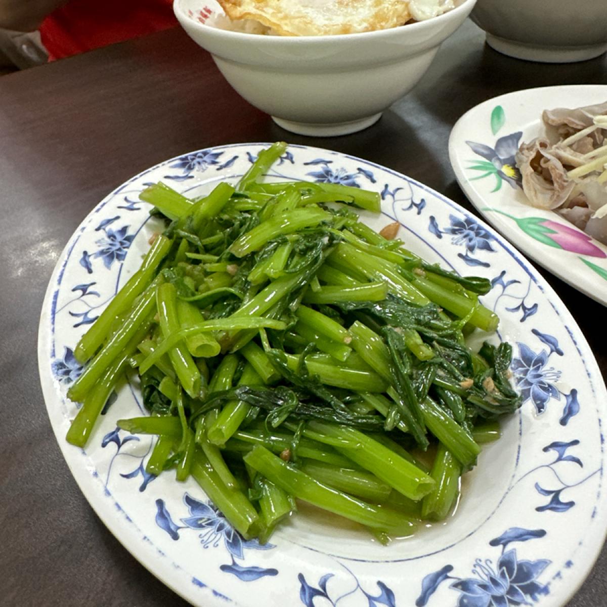 ✅燙青菜:店家提供不同種類的青菜,這邊選的是空心菜。空心菜的口感清脆、新鮮,是簡單川燙再加點鹽巴與大蒜。
