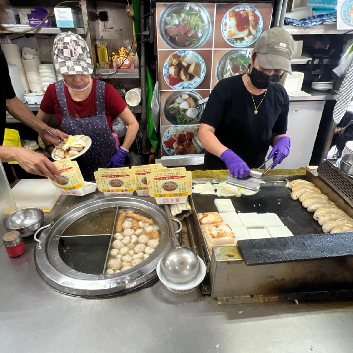 基本上都是要排隊,但是出餐其實蠻快的,都有先前置料理所以點了很快就可以出,主要問題是在於座位不夠的問題。點了基本的一套(菜頭粿、芋粿、米腸、甜不辣、蛋)還有貢丸湯跟加點菜頭粿,整體搭配起來都還不錯,醬料也好吃,二個人吃一份應該滿剛好的,滿足的早餐。