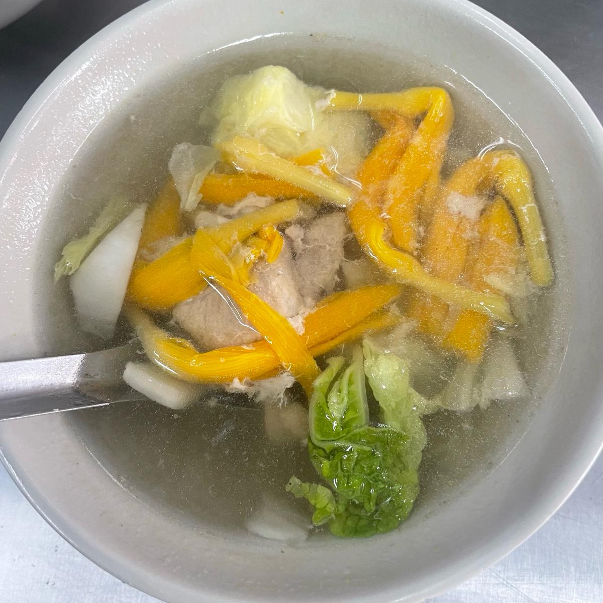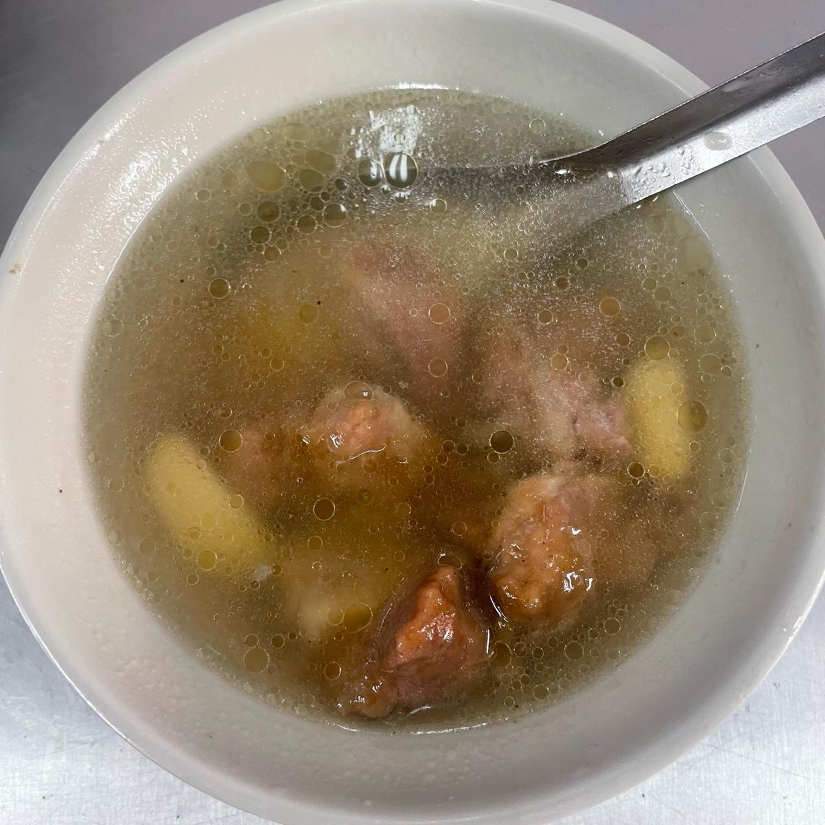 除了排骨,湯裡頭有放兩塊芋頭,我不敢吃芋頭,所以就直接挑掉了