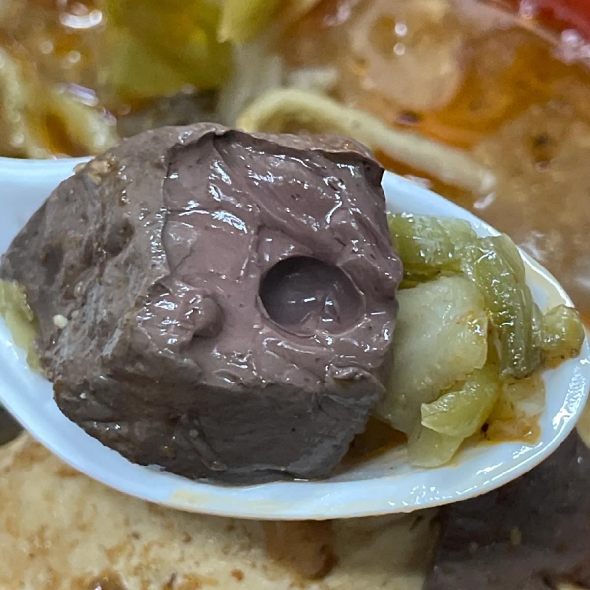 臭豆腐給的很大塊,總共兩塊!味道還不錯,但是稱不上驚豔。鴨血倒是很普通,裡面有加一些酸菜提味,吃完整個很膩口。