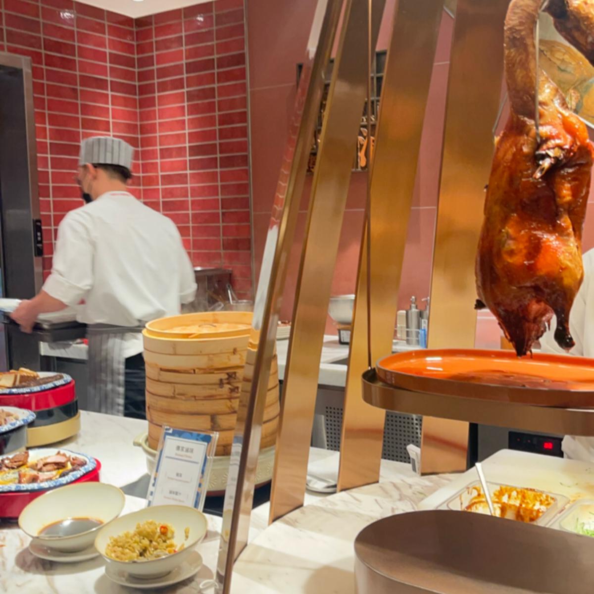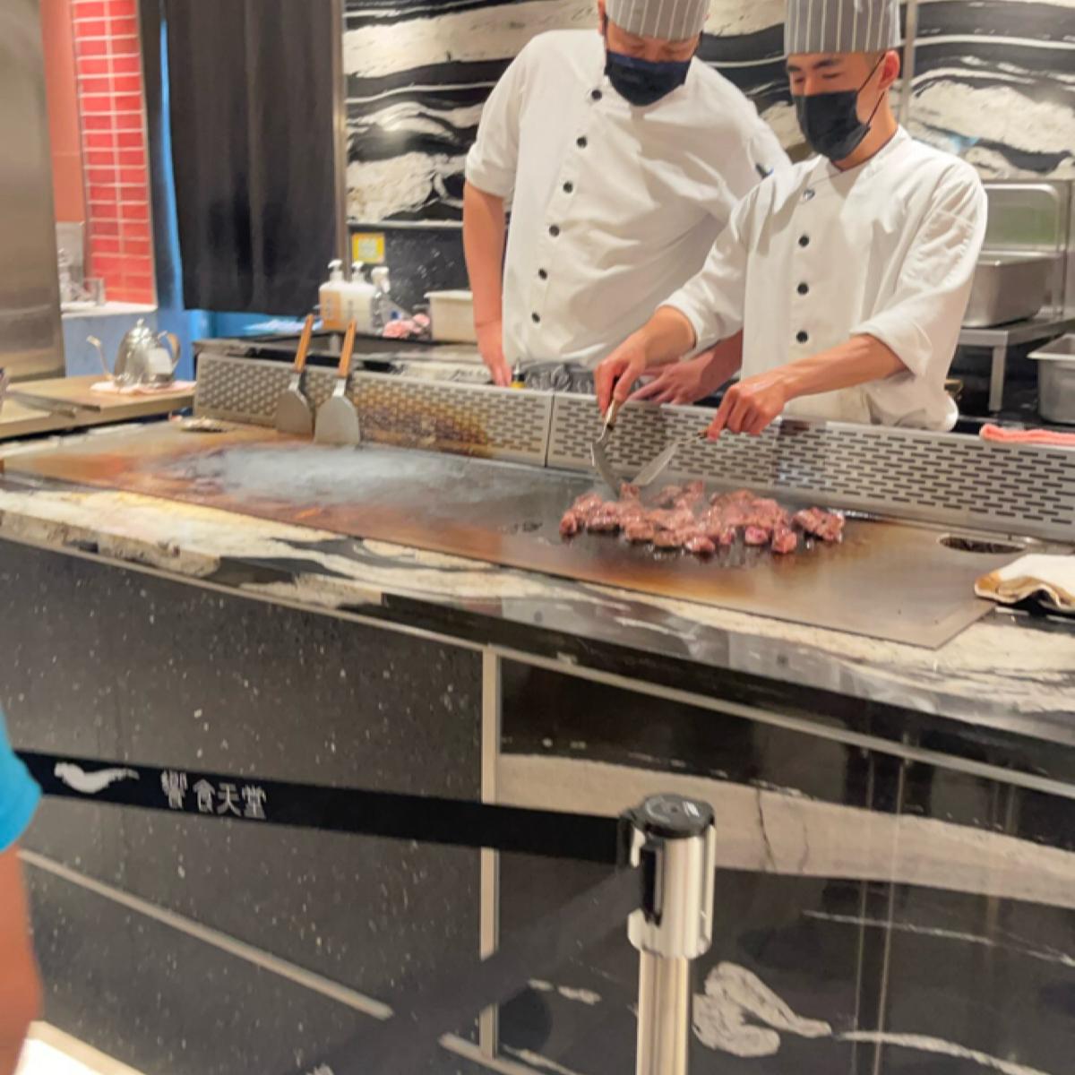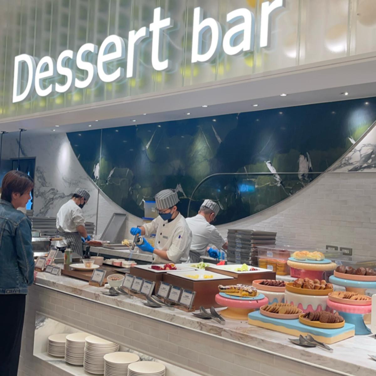 第一次來這邊的饗食天堂用餐,我覺得裡面的食材非常多種,而且擺放的位置也是非常的清楚。而且他的飲料區也有金色三麥的酒,喜歡喝酒的也可以來這邊享受。中午時段非常的多人,很多都要排隊,像是肋眼牛排、烤鴨、跟骰子牛還有德國豬腳。反而生魚片這邊沒什麼人在排隊,生魚片有很大塊的鮭魚也有炙燒的。甜點的話,我就直接選了葡式蛋撻,吃起來也是好吃。之前去澳門買了一卡皮箱的蛋撻回來。油雞跟叉燒普普。廁所的話要去外面上。