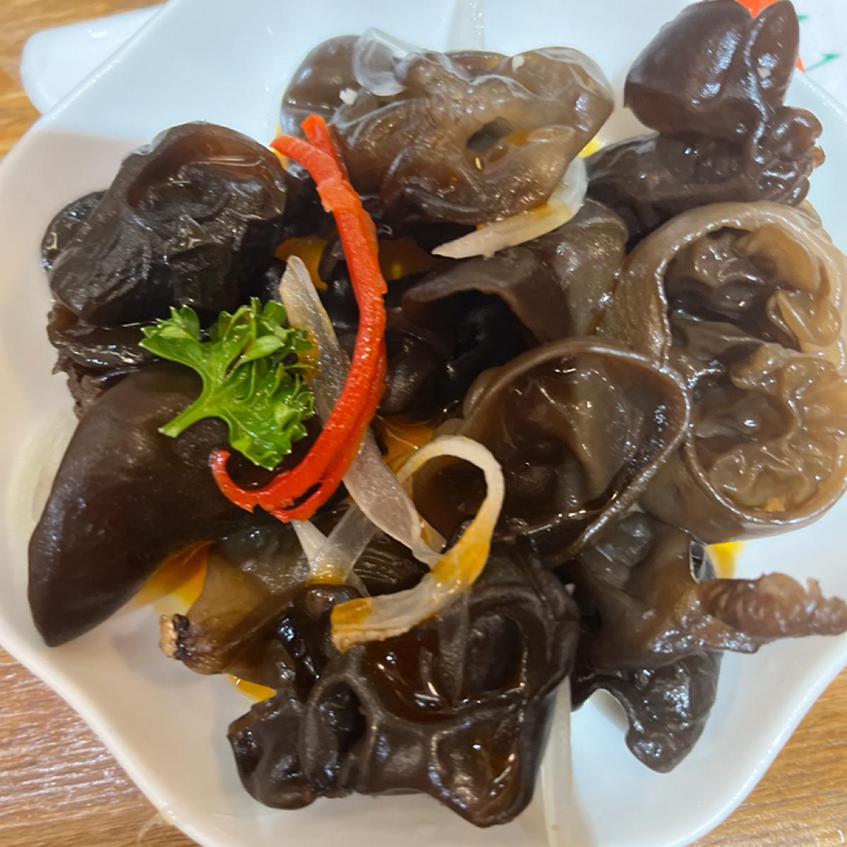 套餐的小菜選的是糖心蛋跟木耳,糖心蛋,是一顆切成一半,木耳的份量比我想像中的多,給的很大方。