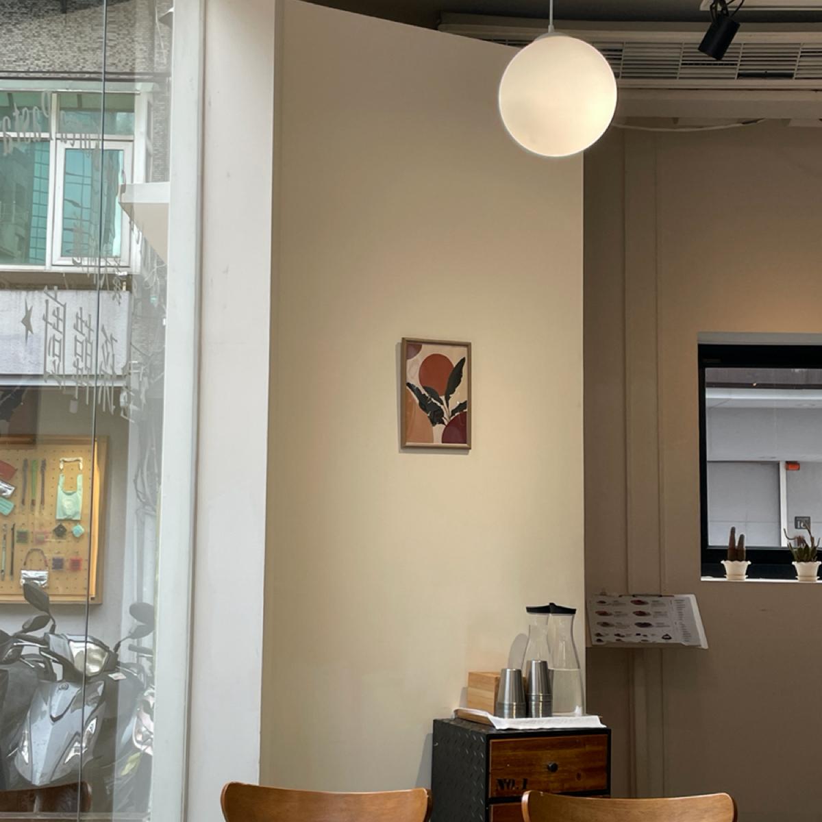 餐廳外觀白色橘色很亮眼,有大範圍的落地玻璃整體採光很好,內部風格簡單。
