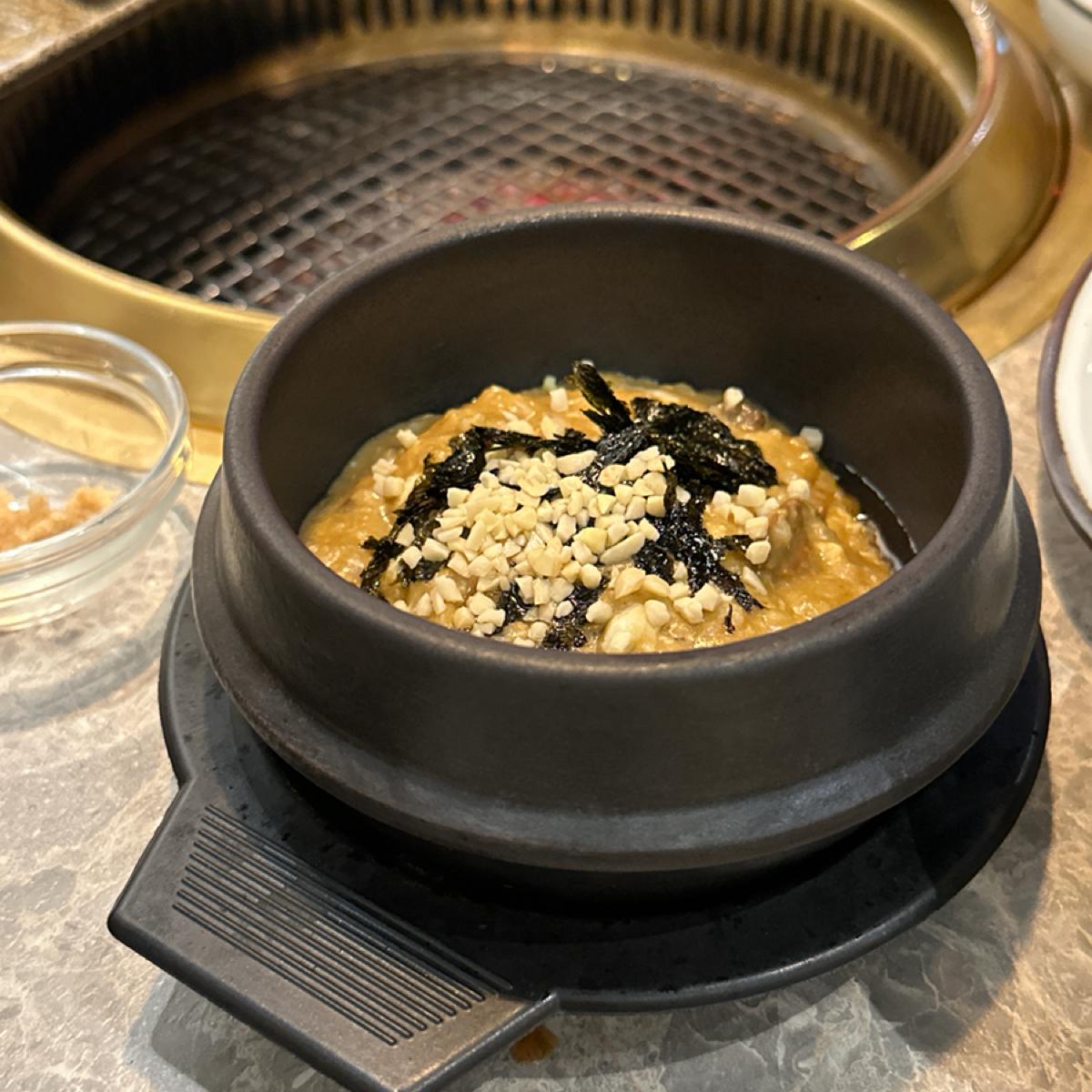 韓風鮑魚粥蠻特別的,是燉的很爛的海鮮燉飯的感覺,非常推薦。兩班家是會願意再回訪的韓式燒烤店👍