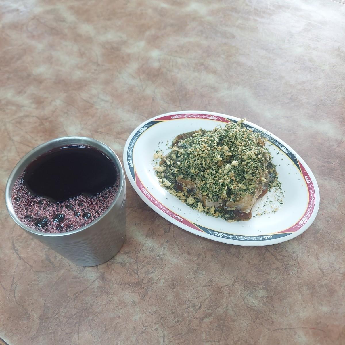 臭豆腐上淋上海苔酥跟油膏,入口時那極濃烈的臭香直衝腦門,帶來相當大的震撼。