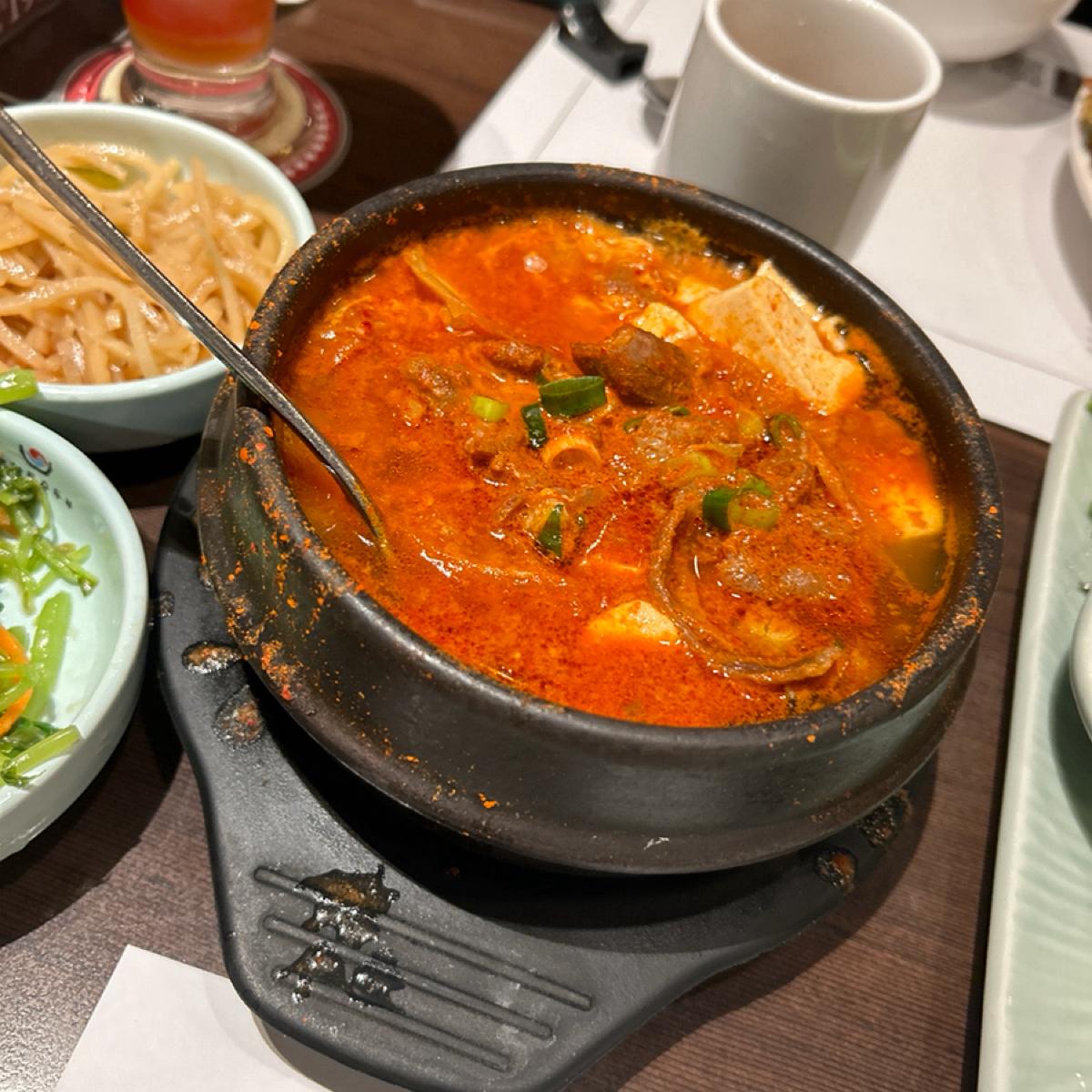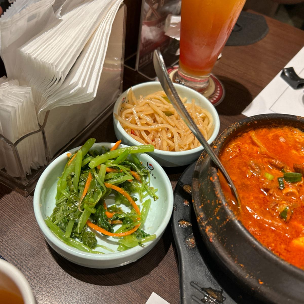 ▪️泡菜牛肉嫩豆腐煲可選牛或豬肉,都會附一顆生雞蛋,要趁熱打進鍋裡。湯很香很好喝,搭配牛肉及泡菜吃也很讚😋。