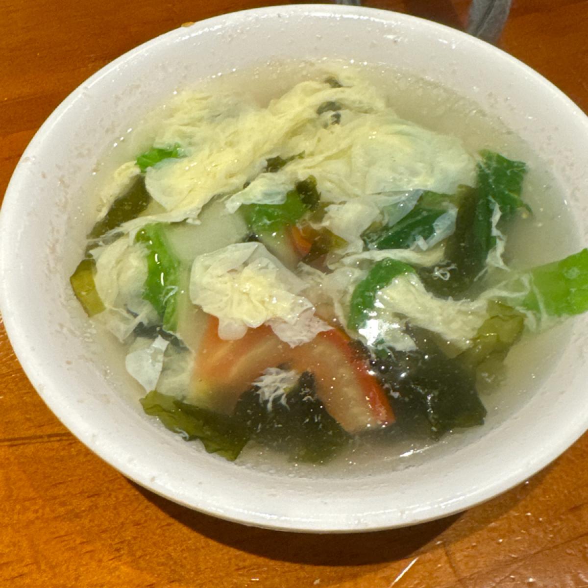 -芙蓉紫菜湯-65-就比較一般的蔬菜湯,裡面有紫菜,番茄,蛋花,再加香油調味,中規中矩。