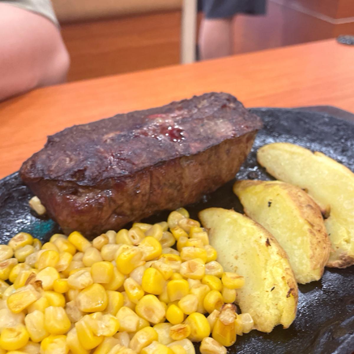 使用澳洲牛肉的板腱牛排,口感紮實但不會乾柴,熟度只有全熟,可以選擇要不要加胡椒醬,我們這次是沒有加醬,只沾醬料台付的鹽巴,比較吃的出牛肉的原味,這個價錢跟夜市牛排比起來肉質好非常多~