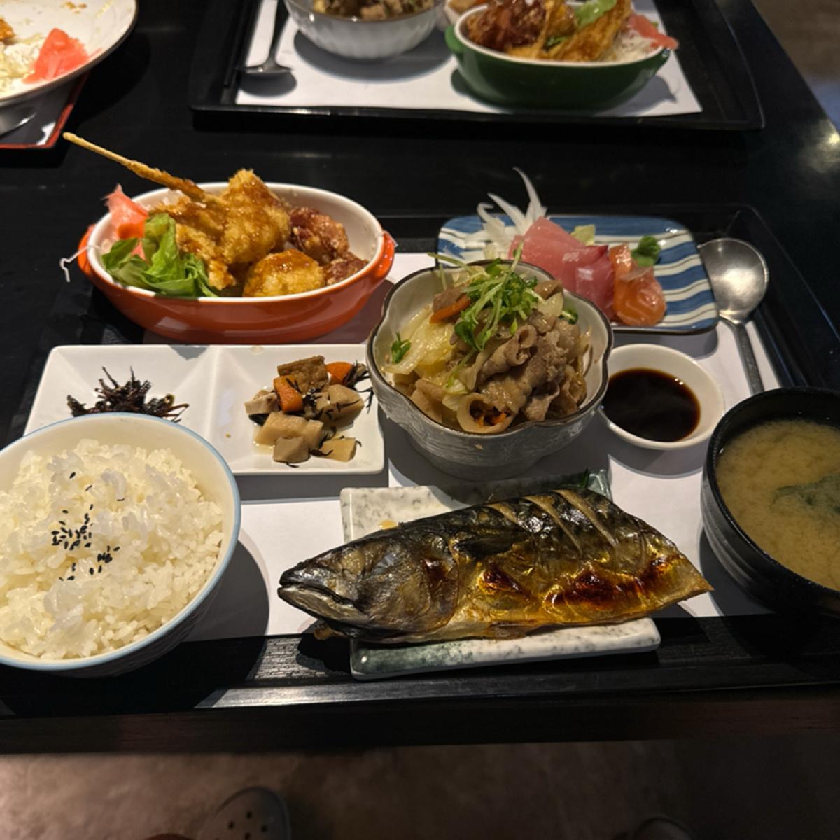 哈日族定食,份量超多!炸物有花枝丸、唐揚雞、魚、青花菜,炸得不錯不會太油膩,粉不會很厚,生魚片很厚有4片,味增湯有很多洋蔥。適合三心二意什麼都想吃的人。 店內提供檸檬水、微甜麥香紅茶免費自取,紅茶的麥香很濃很好喝。