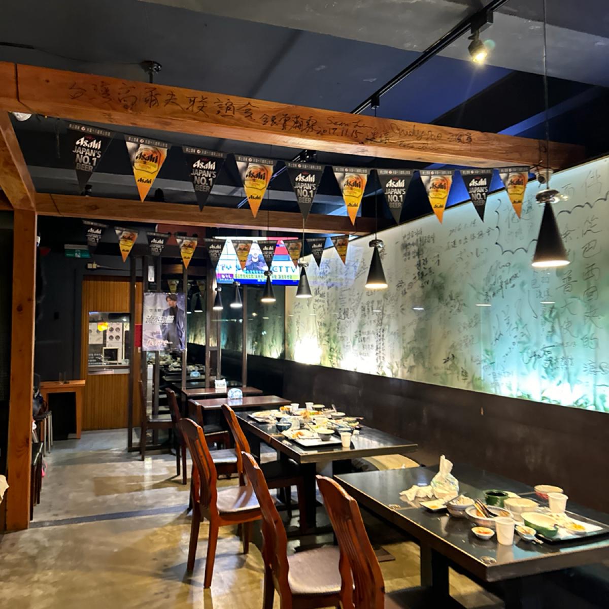 整面玻璃牆上有許多人簽名,美食節目、到此一遊的簽名! 可惜的是,家具較老舊,有破損,用不同顏色的塑膠皮貼補應急。
