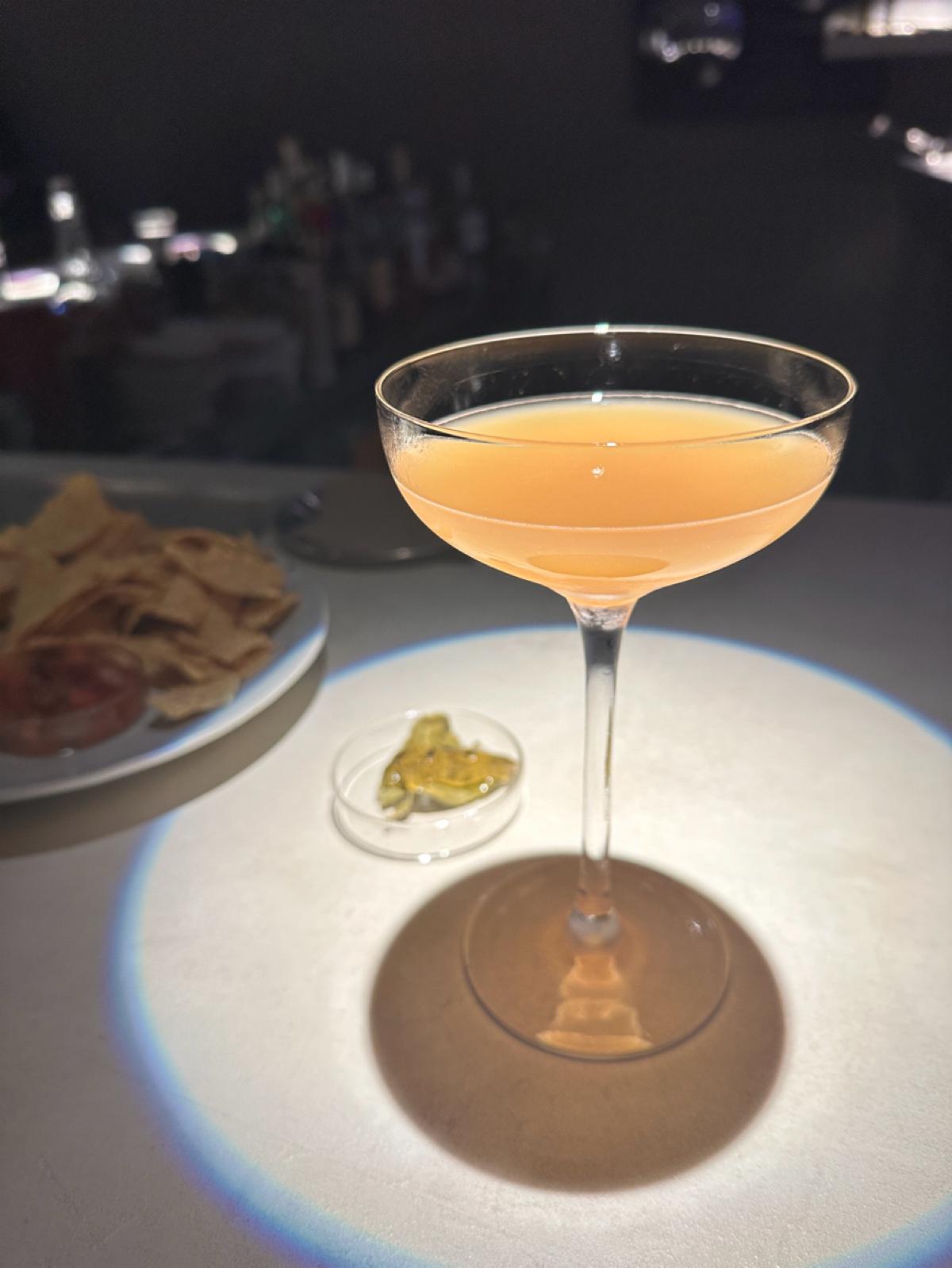 我的中文翻譯其實叫做給我那片火腿~喝起來,有一點點像是西班牙的風味冷湯,介紹裡面其實也是這麼說的,會是一種食物感比較強烈的調酒!喝的時候其實可以很明顯的喝到龍舌蘭和山苦瓜配出來的一種很特殊的味道,再加上甜椒🫑跟火腿結合,就很像是在吃一道餐點一樣!