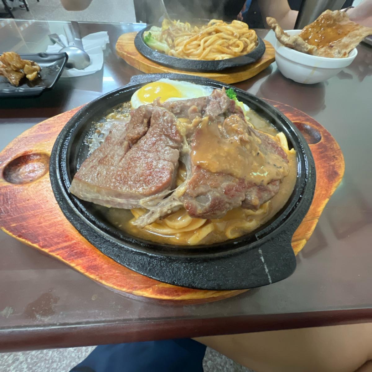 店家其實蠻老實的,如果只點最基本的牛排,份量會偏薄,很容易一下子就全熟了。所以這次改點 8oz 沙朗,口味表現算是 OK,熟度也比較能掌握,搭配的鐵板麵吃起來還不錯。相比之下,豬排 的表現就比較普通,尤其附近還有幾間平價牛排店,有些豬排更好吃,難免被比下去。
