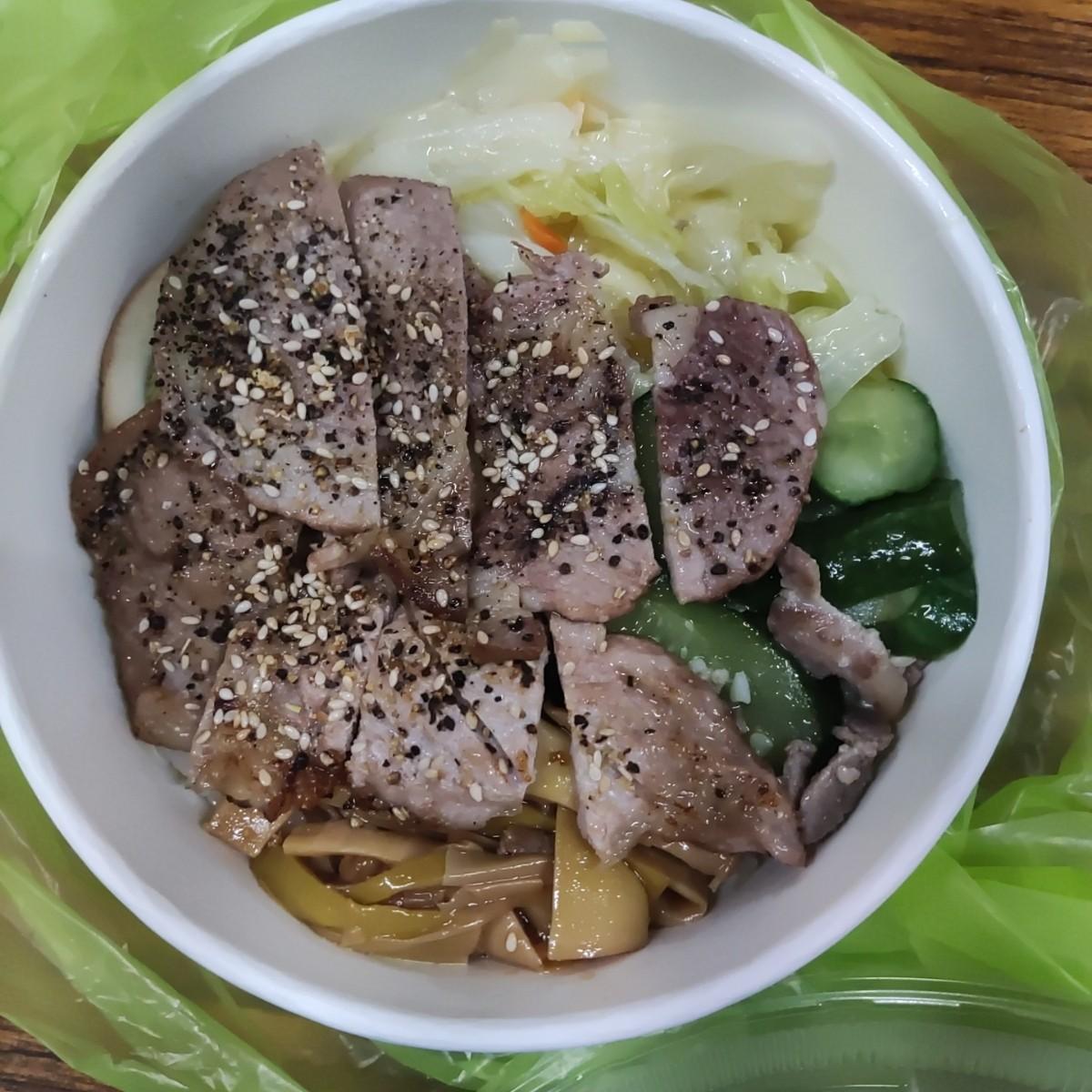 整份便當的量,只佔便當盒的一半,拎起來輕輕地,心就涼一半,打開看到的是肉片不是肉排,整個心都碎了。
