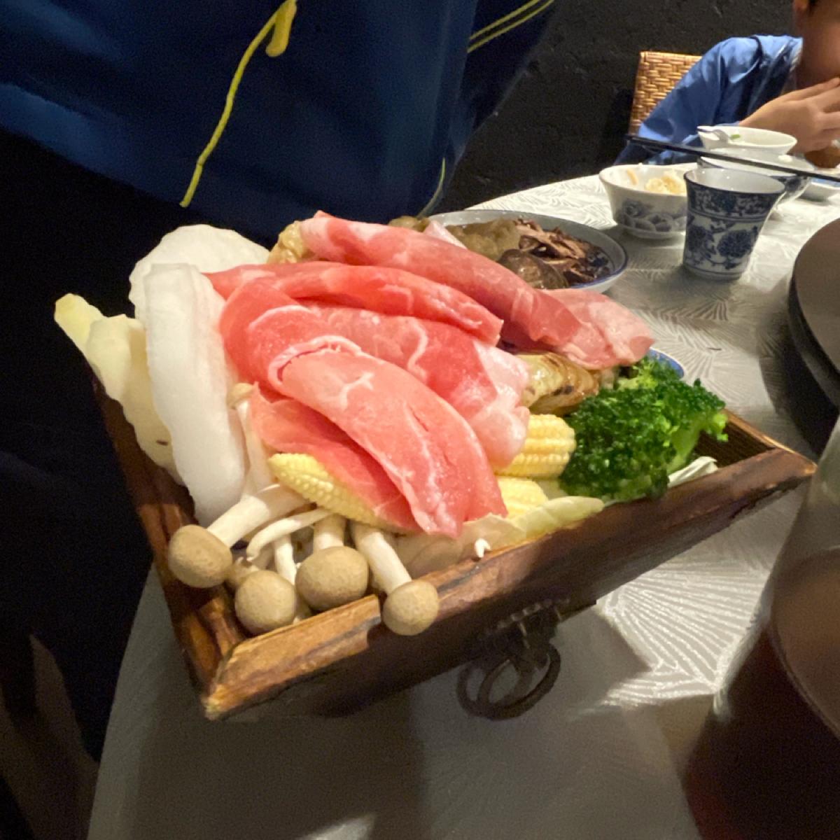 最後一個是麻辣火鍋(含鴨血、豆腐、菜盤),吃起來蠻辣的,鴨血有嫩豆腐不錯,蠻大鍋吃不完只能打包。