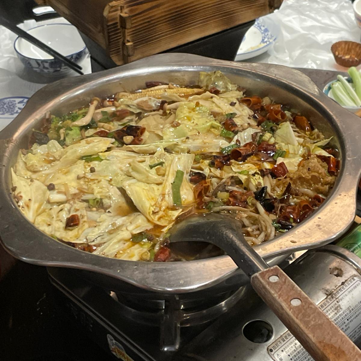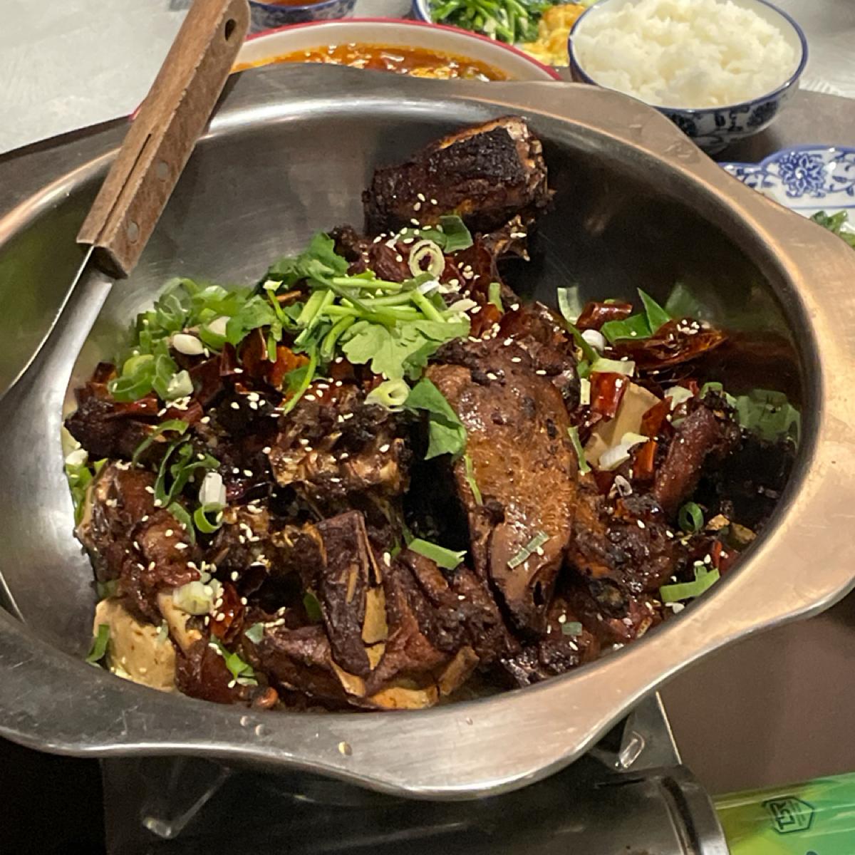 再來是乾鍋鴨,裡面有許多辣椒等辛香料,鴨肉的部分不多,雖然咬起來很香但個人不太喜歡啃骨頭。