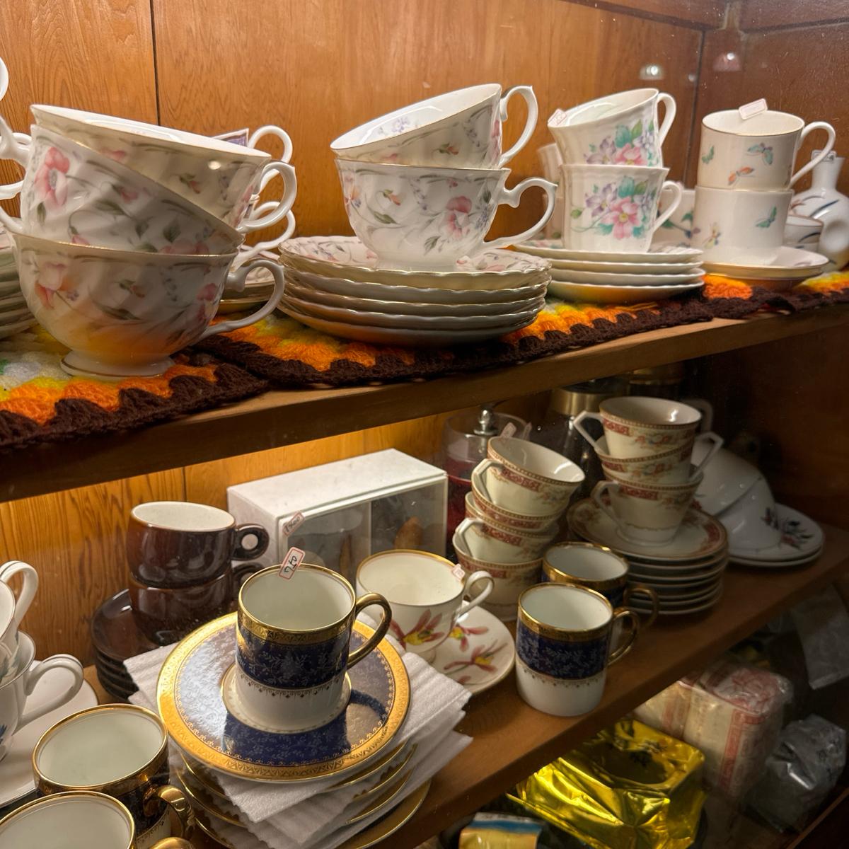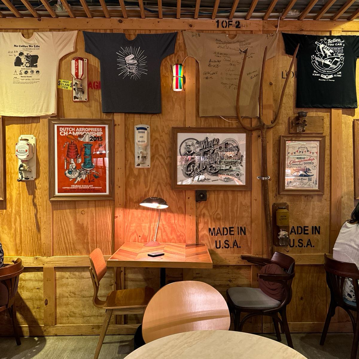 店內風格有種中藥店的復古風,懷舊的收藏品加上牆面上有衣服當作擺飾,還有販售一些漂亮的杯具。