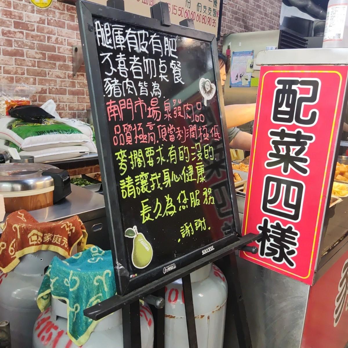 主食幾乎都是炸的居多,還保有肉汁不至於乾柴。 雞腿超大隻,飯可以換菜,配菜菜色多樣且都有一定水準。 焢肉飯,不是滷的死鹹那種,給的好幾個五花肉塊,飯上淋好醬汁,口味不錯。 之前雞排是高CP,但已經停賣了。 現在假日有咖哩飯,裡面的雞腿很嫩,很好吃!