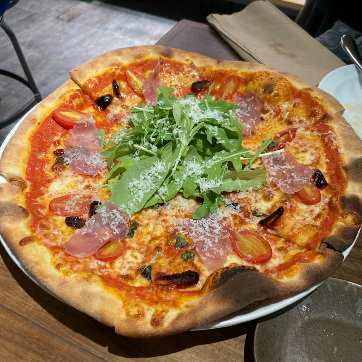 Pizza邊皮吃起來有蘇打餅乾的感覺,餅皮比較沒有Q彈感;整片就是淡,除了吃到中間火腿加紅醬味道有濃一點,其他有種醬料只輕輕刷過一次的感覺