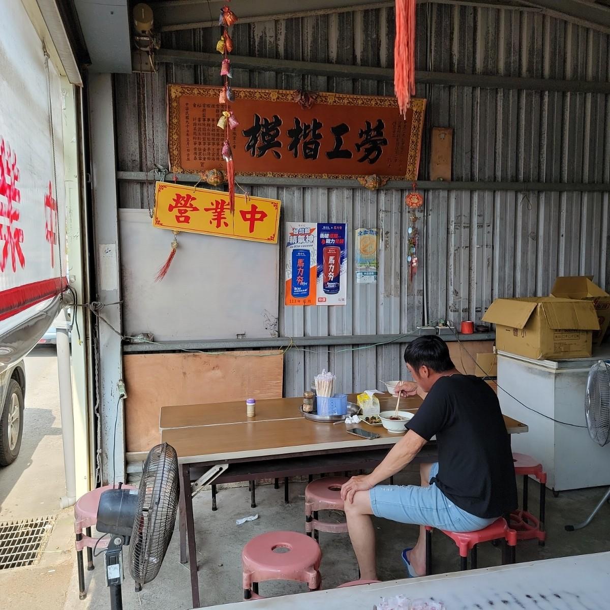 在大馬路旁的鐵皮屋建物,現場沒看到門牌,招牌也褪色不易察覺。由於是下午去的,裡面非常悶熱沒有冷氣;且環境衛生不佳,有非常多的蒼蠅飛來飛去;邊吃飯要邊趕蒼蠅,桌上的醬料瓶口也都被蒼蠅佔領根本不會想加。